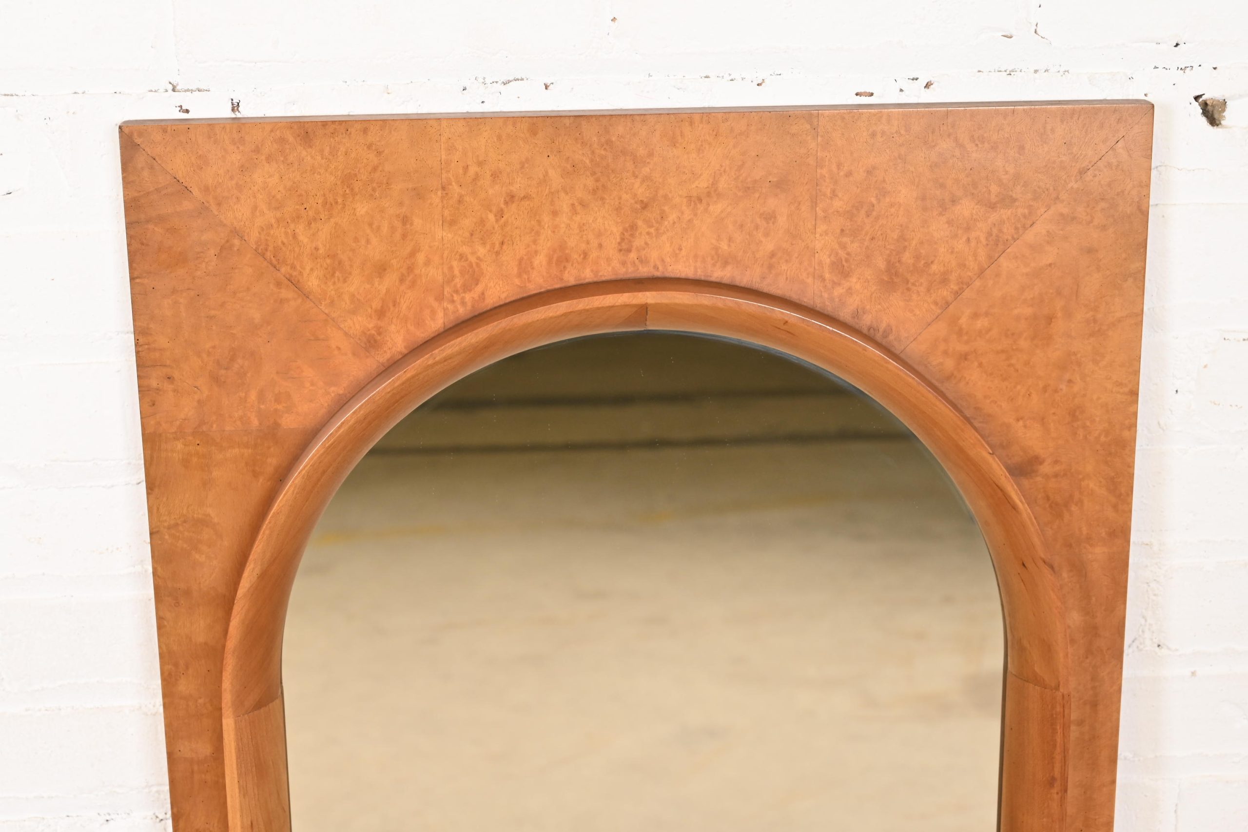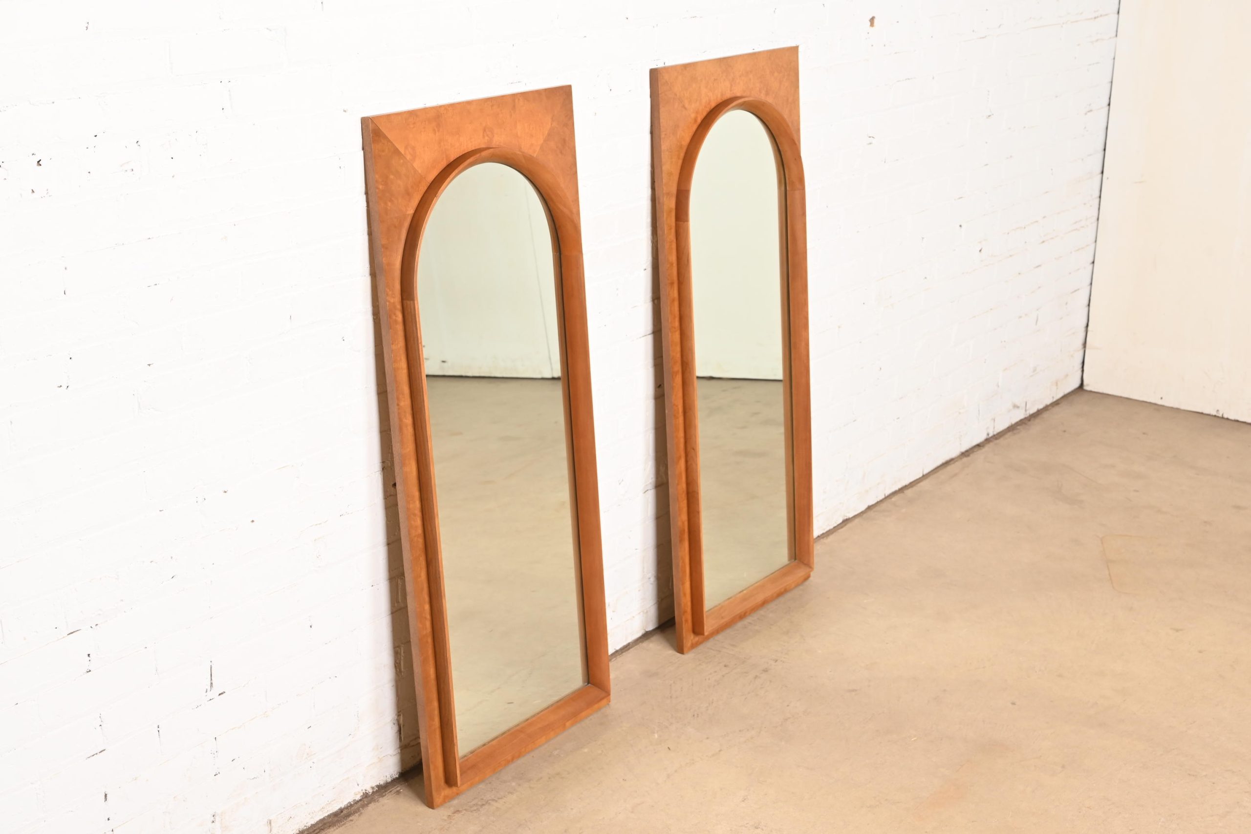 Thomasville Mid-Century Modern Burled Walnut Framed Arched Wall Mirrors, Pair