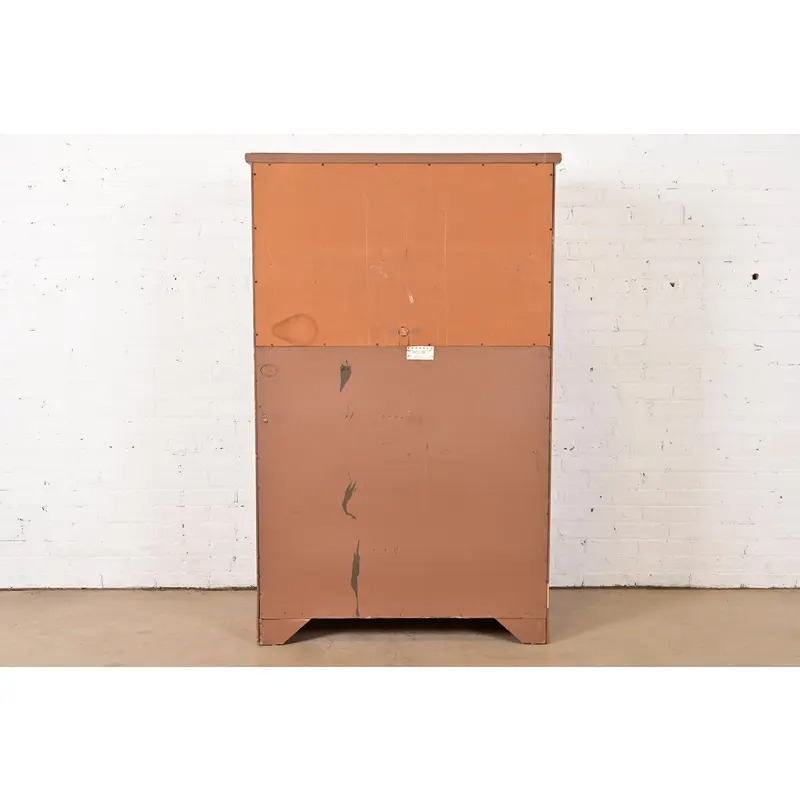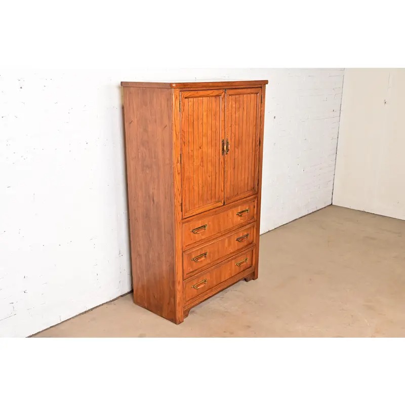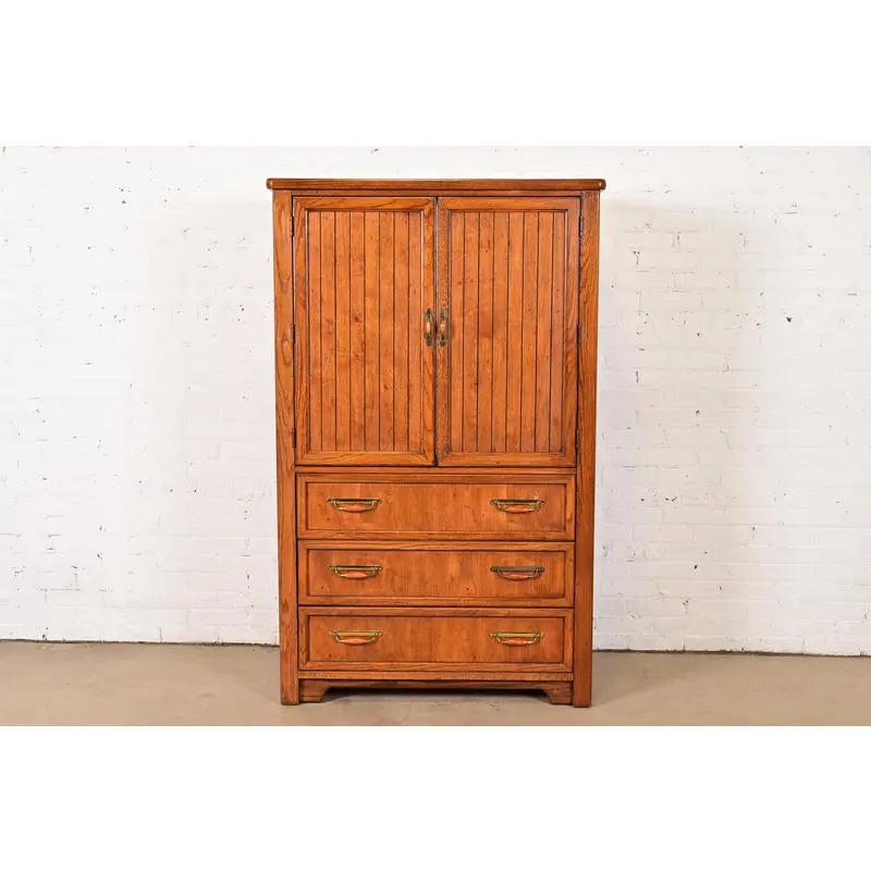 A gorgeous Mid-Century Modern Campaign style armoire dresser or gentleman’s chest