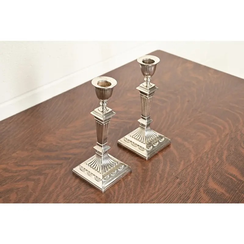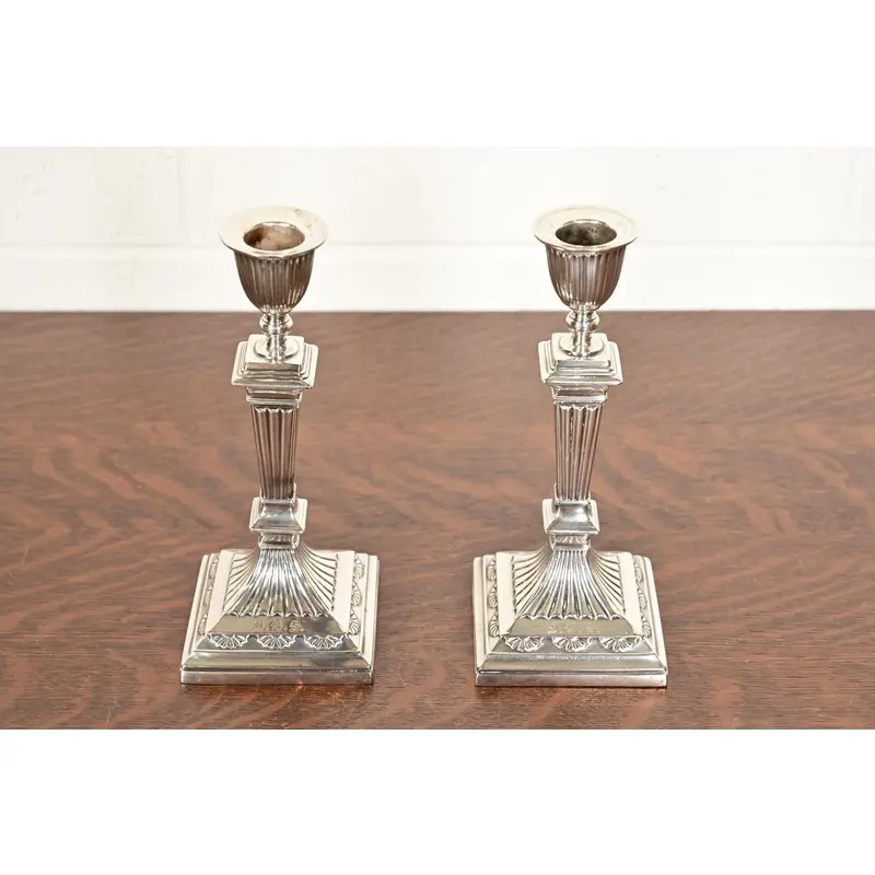 Tiffany & Co. Antique Neoclassical Silverplate Candlesticks, Pair