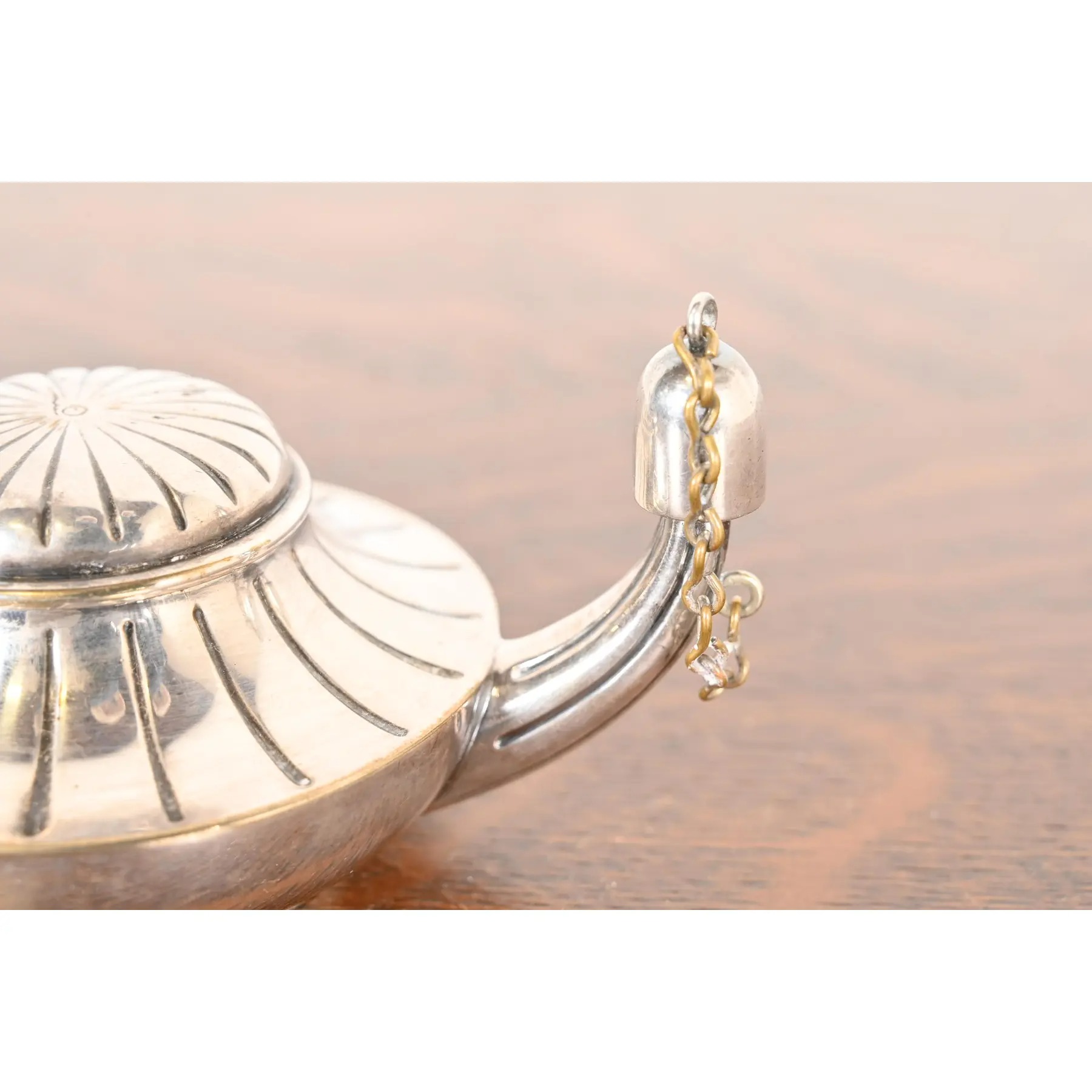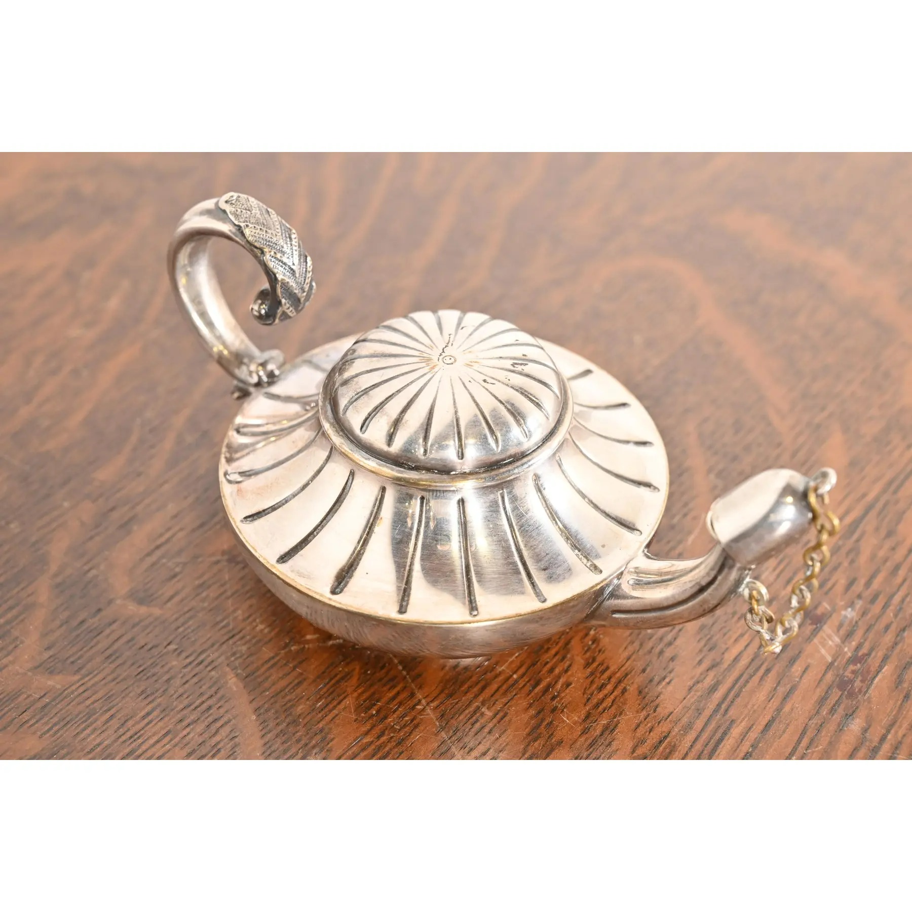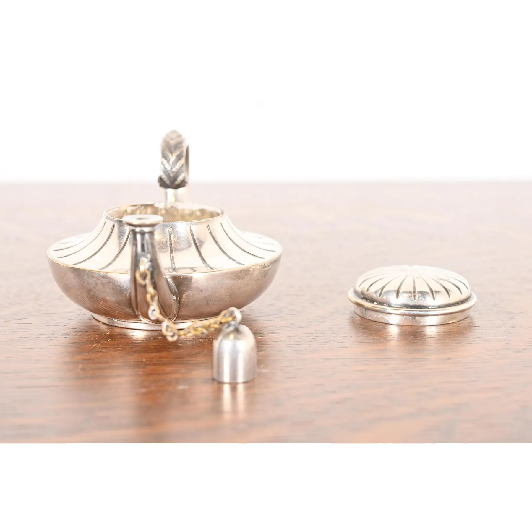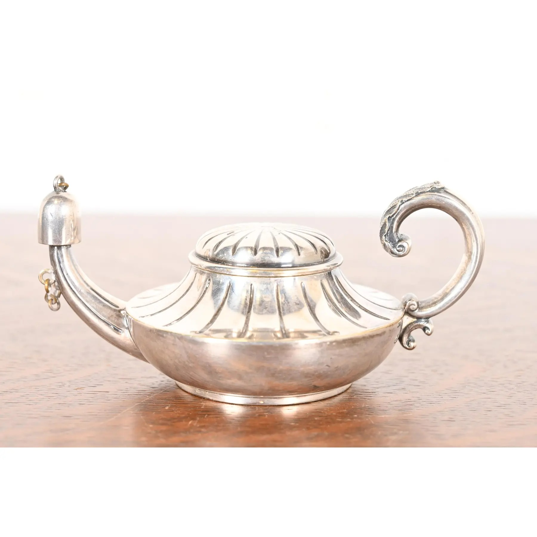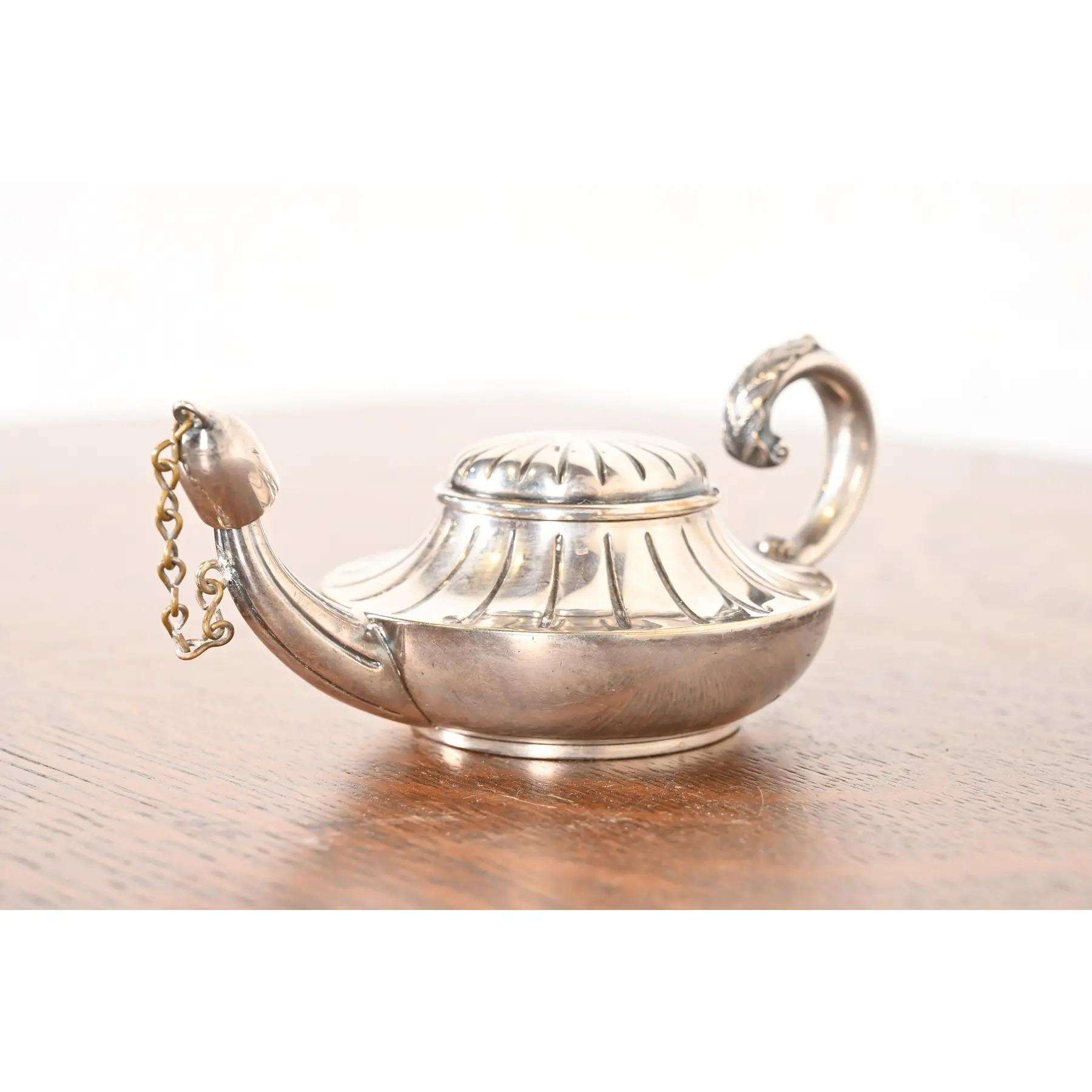 A gorgeous antique Victorian silver soldered Aladdin lamp form table cigar lighter