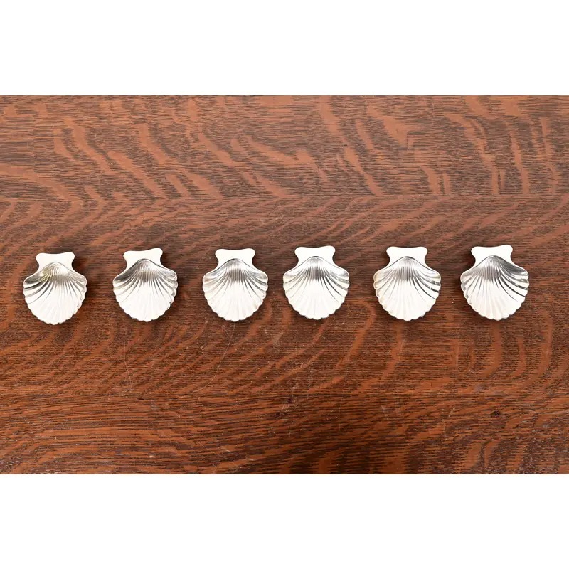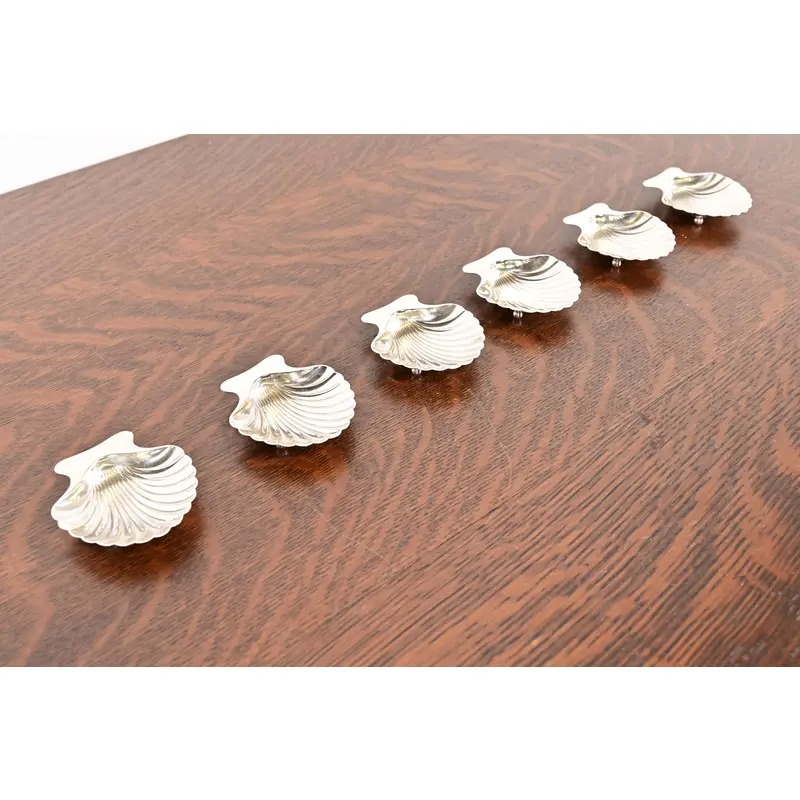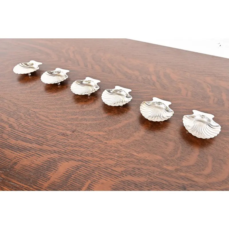 A gorgeous set of six sterling silver shell-shaped salt cellars or nut bowls