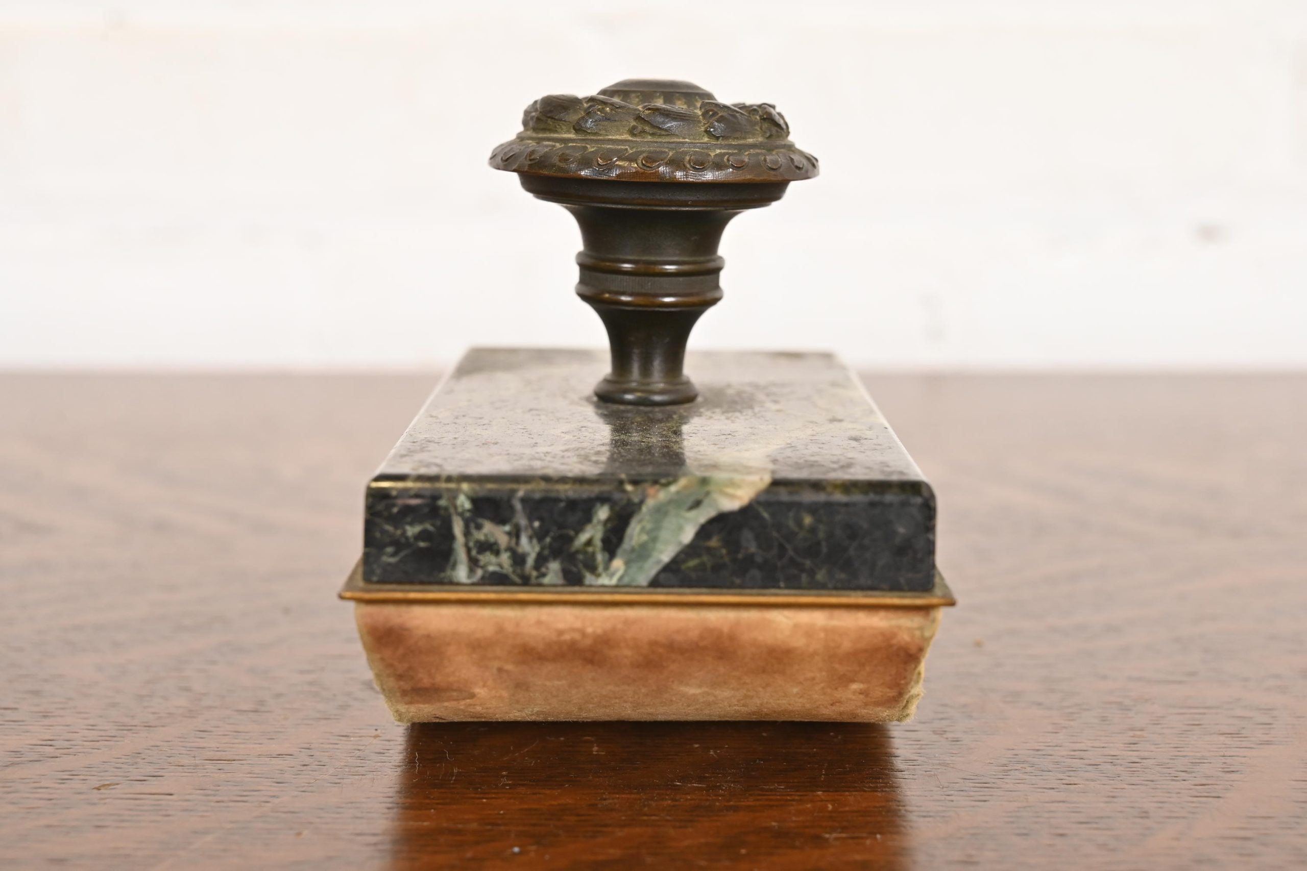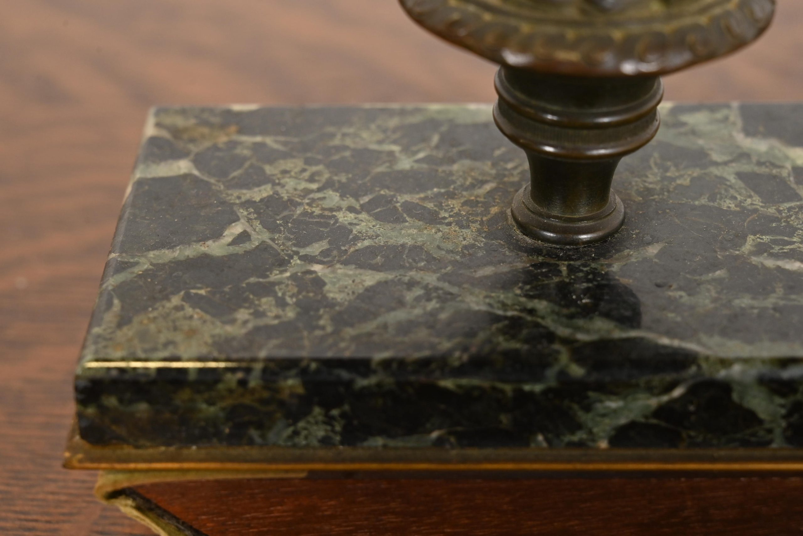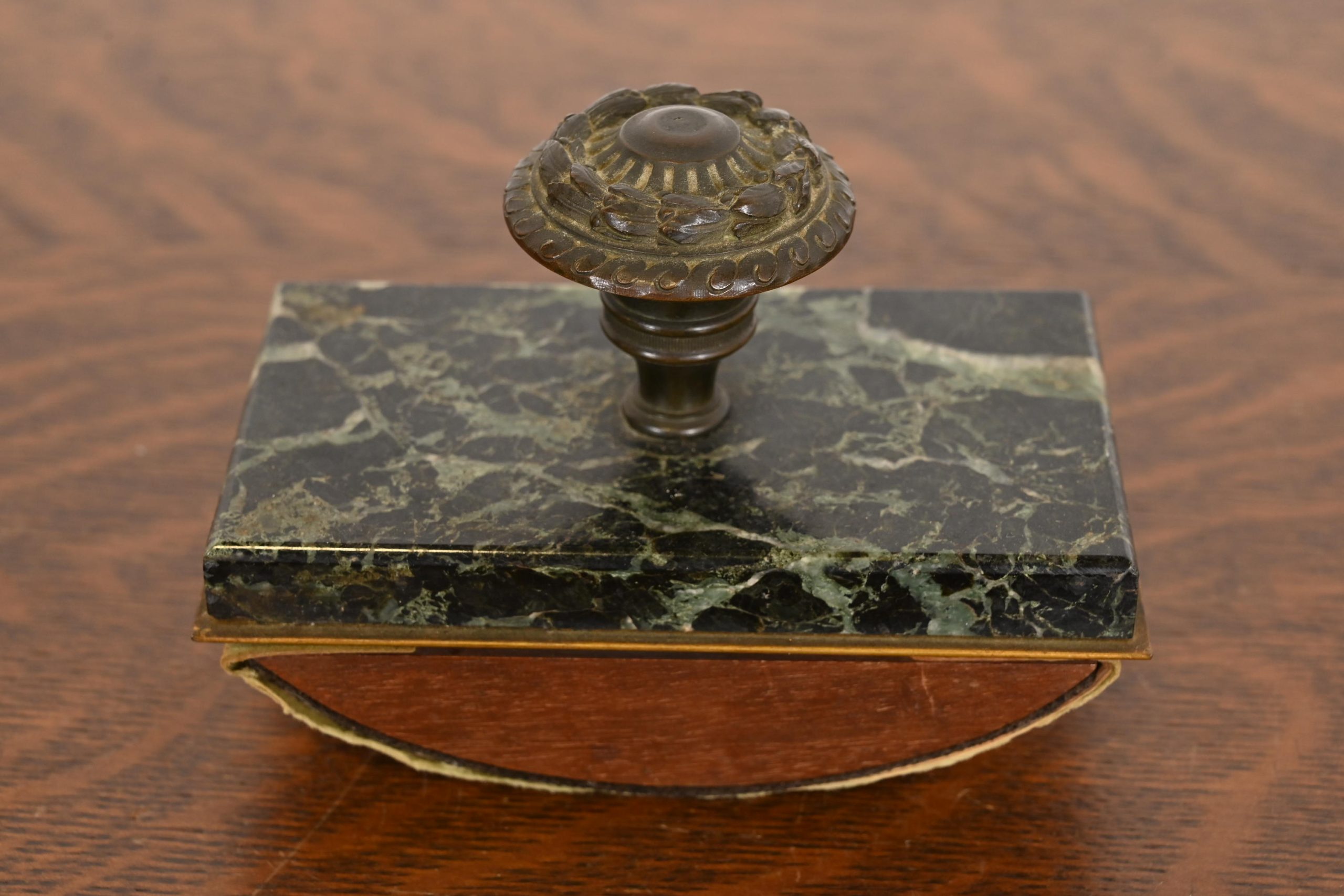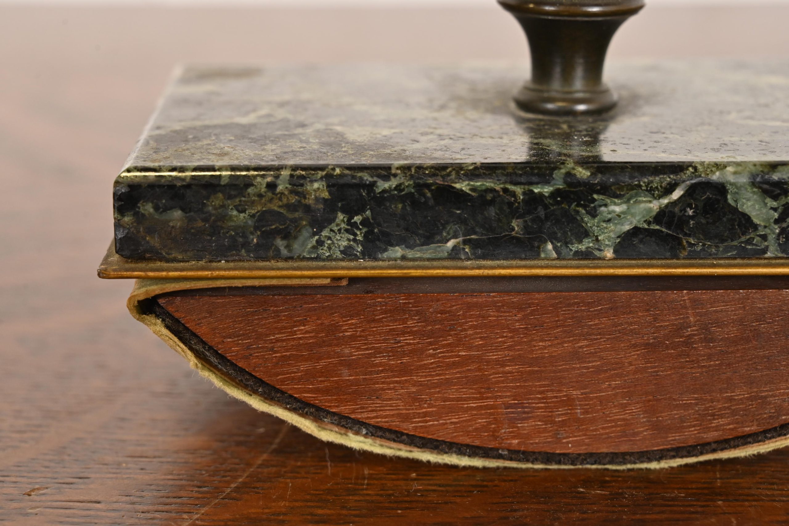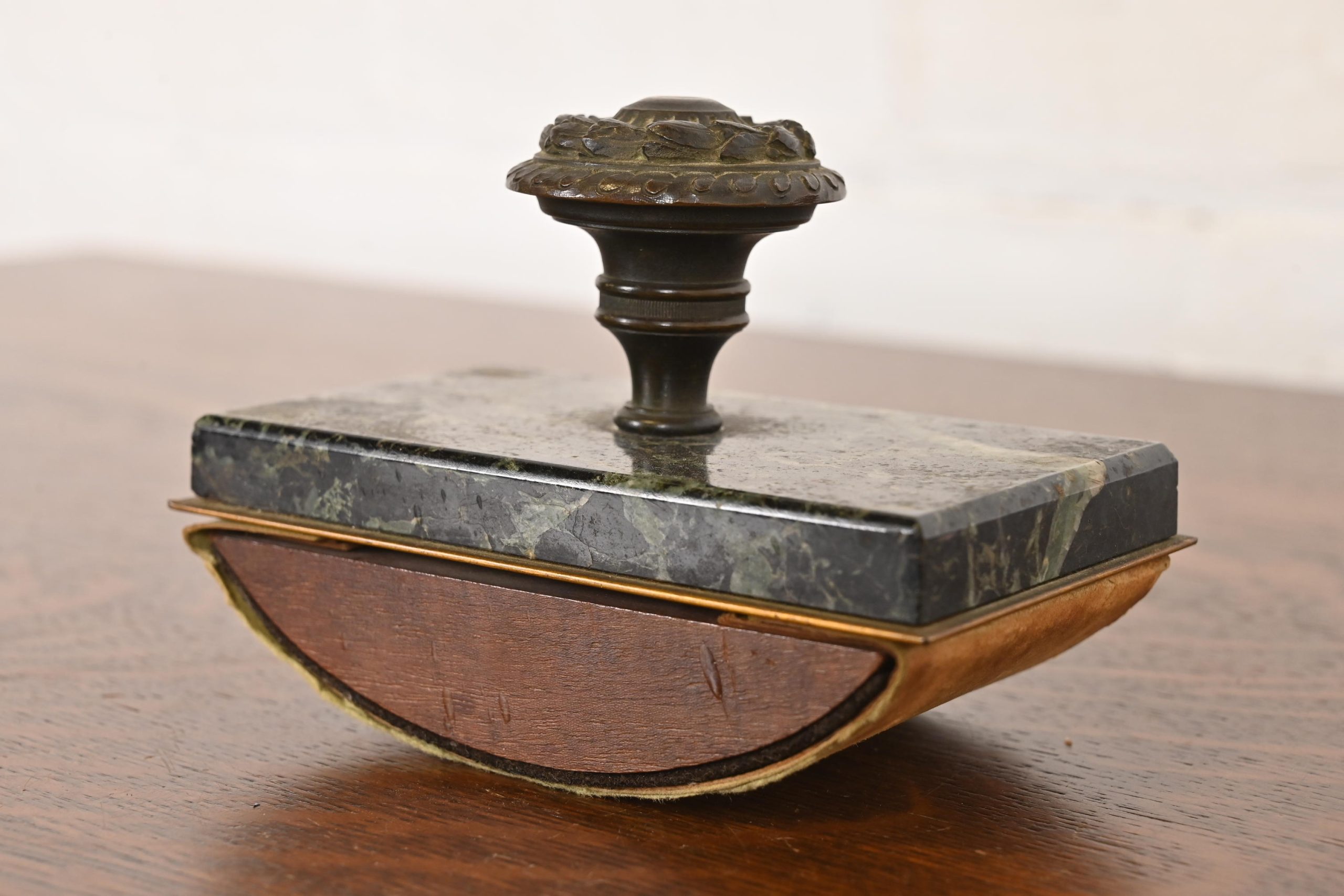 Tiffany & Co. Style Antique Empire Marble Rocker Blotter With Brass Laurel Wreath Handle