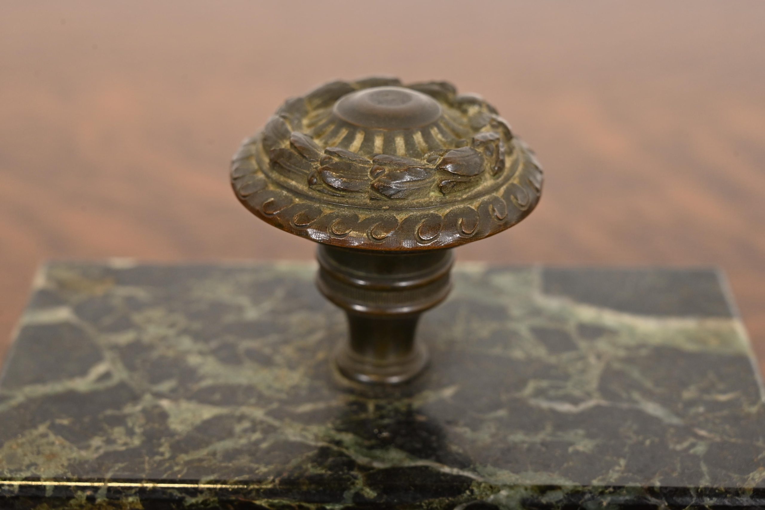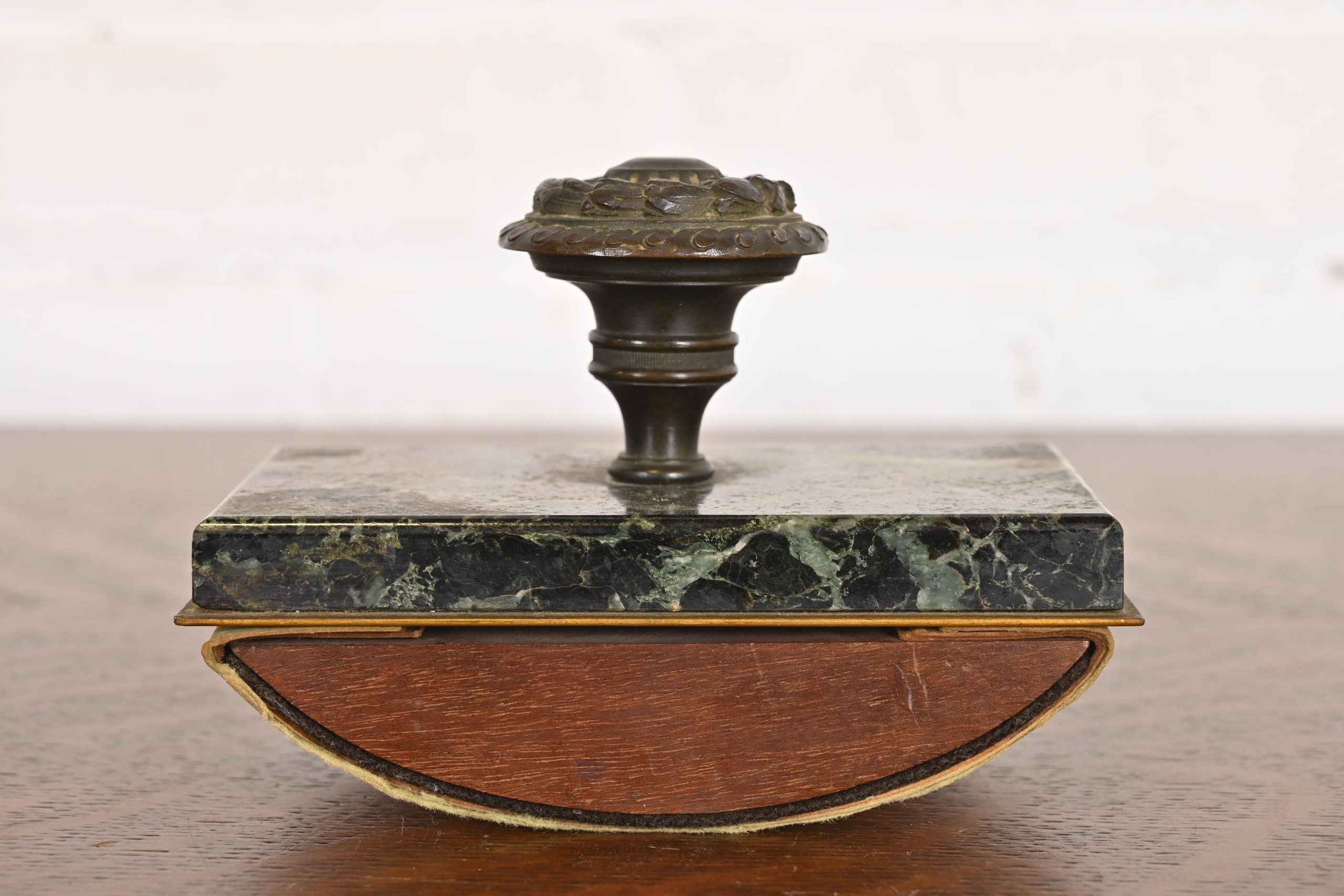 An exceptional antique Empire or Neoclassical marble rocker ink blotter with brass laurel wreath handle