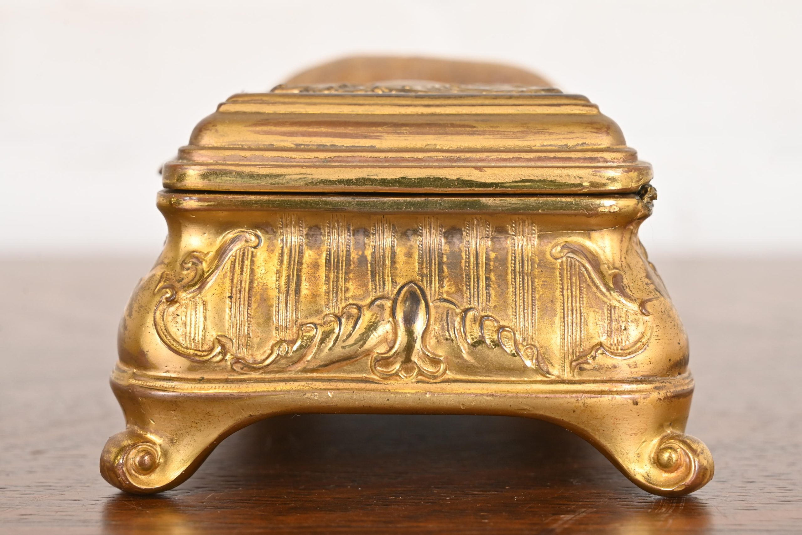 Tiffany & Co. Style Antique French Repousse Bronze Doré Jewelry Box