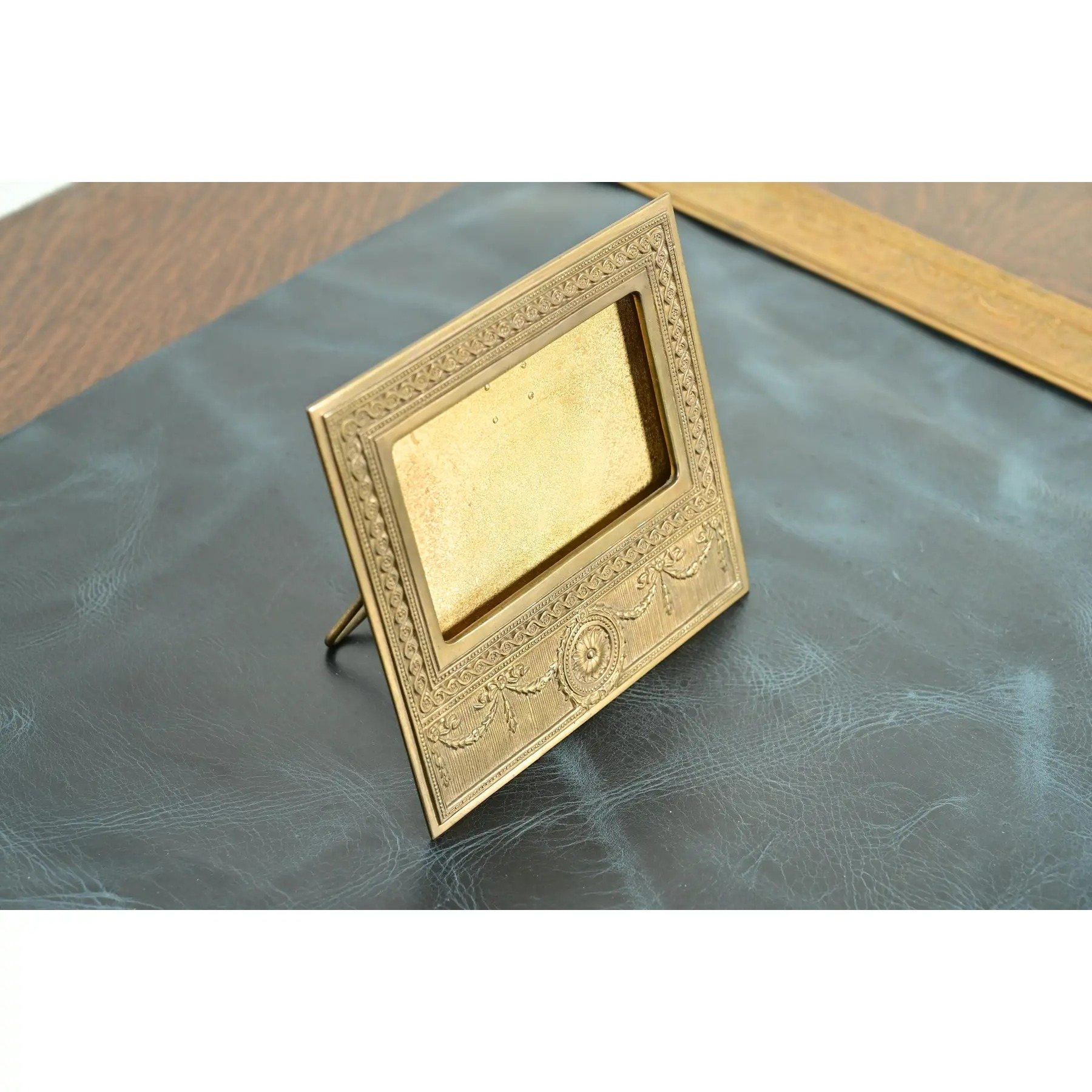 A gorgeous antique gilt bronze Neoclassical or Adam style desk calendar frame or picture frame