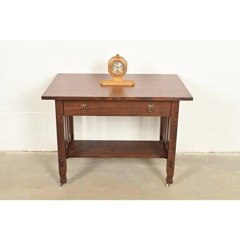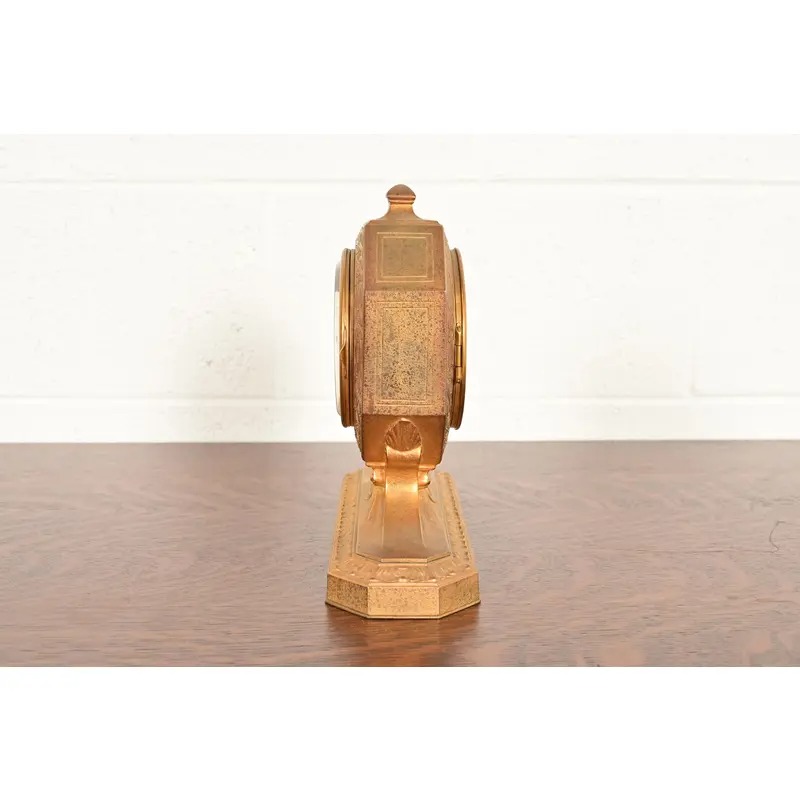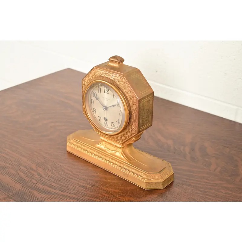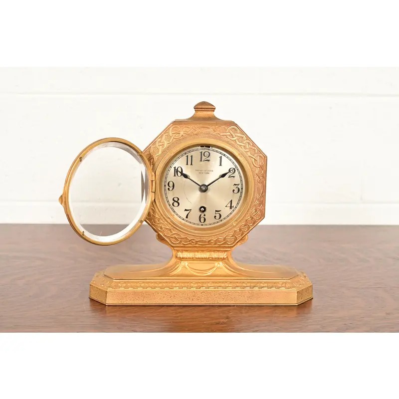 Tiffany Studios New York Arts & Crafts Bronze Doré Desk Clock or Mantel Clock, Circa 1910