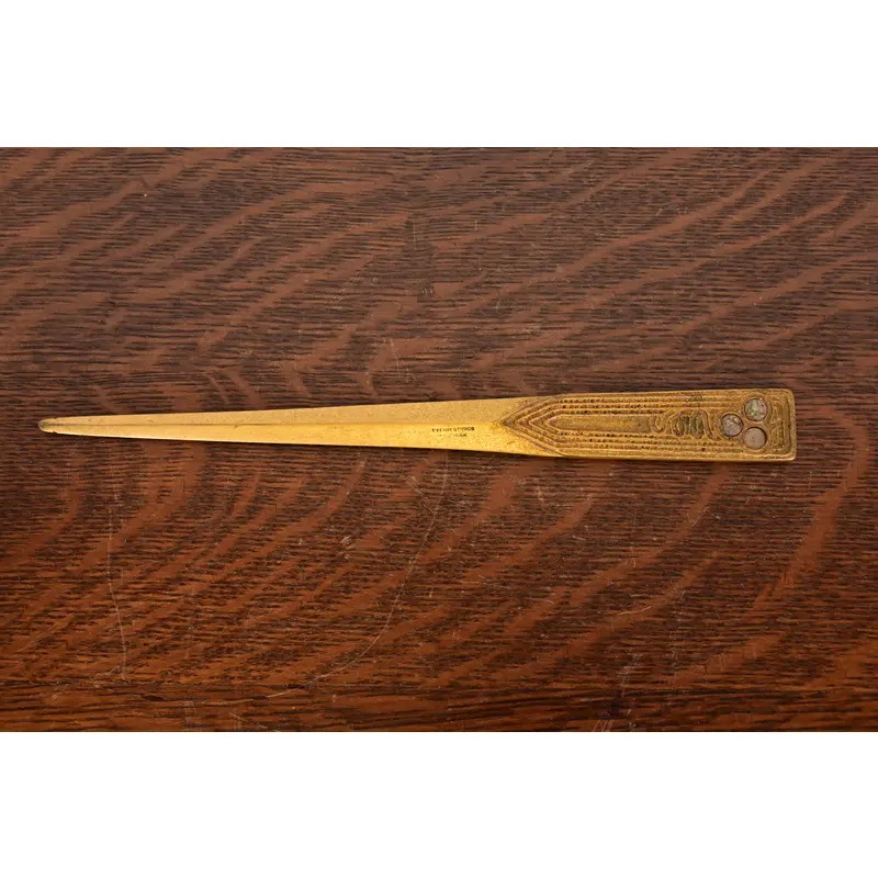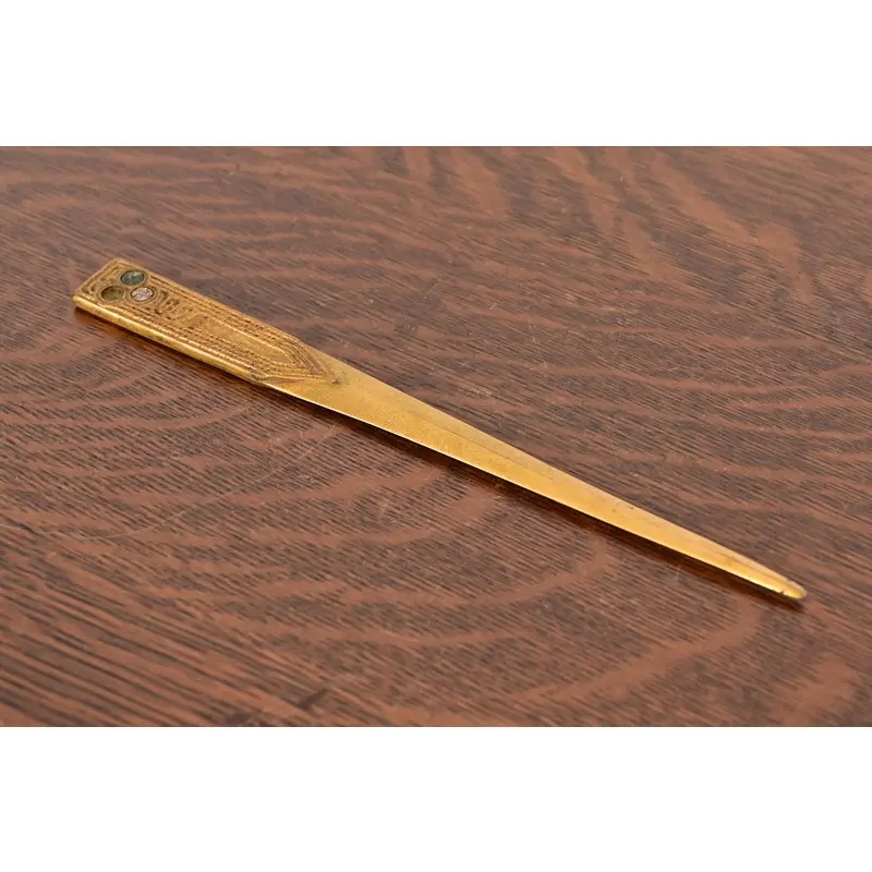A gorgeous antique Arts & Crafts or Art Deco period gilt bronze and inlaid abalone letter opener