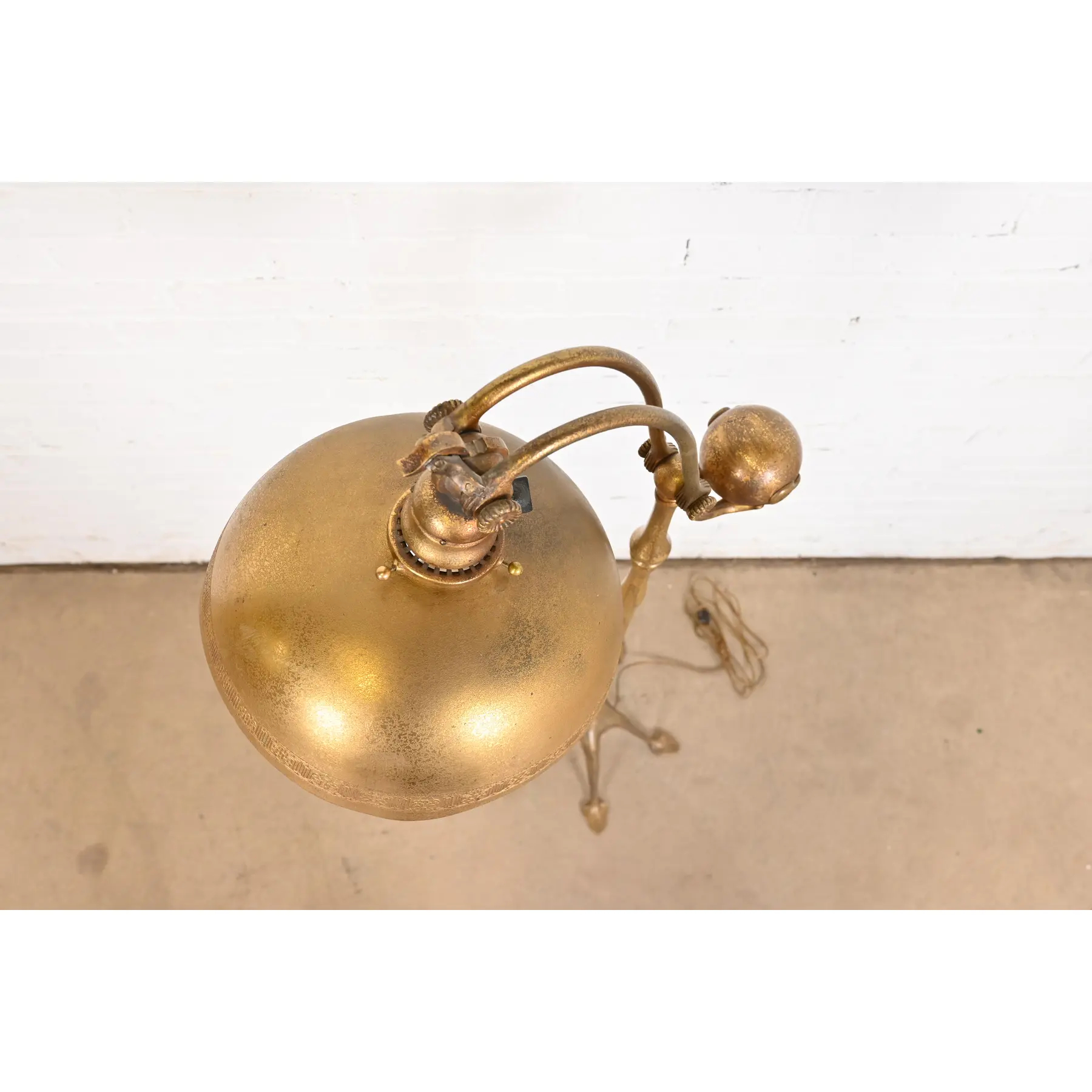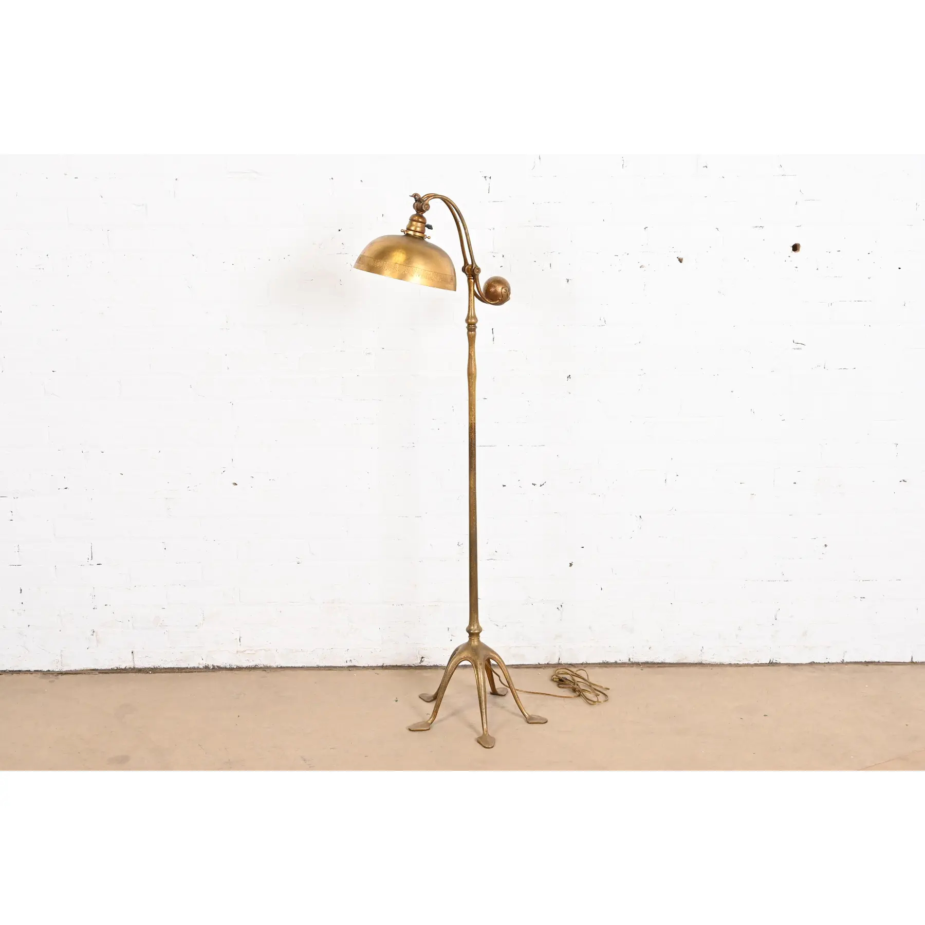 An outstanding Arts & Crafts or Art Deco period gilt bronze counterbalance floor lamp