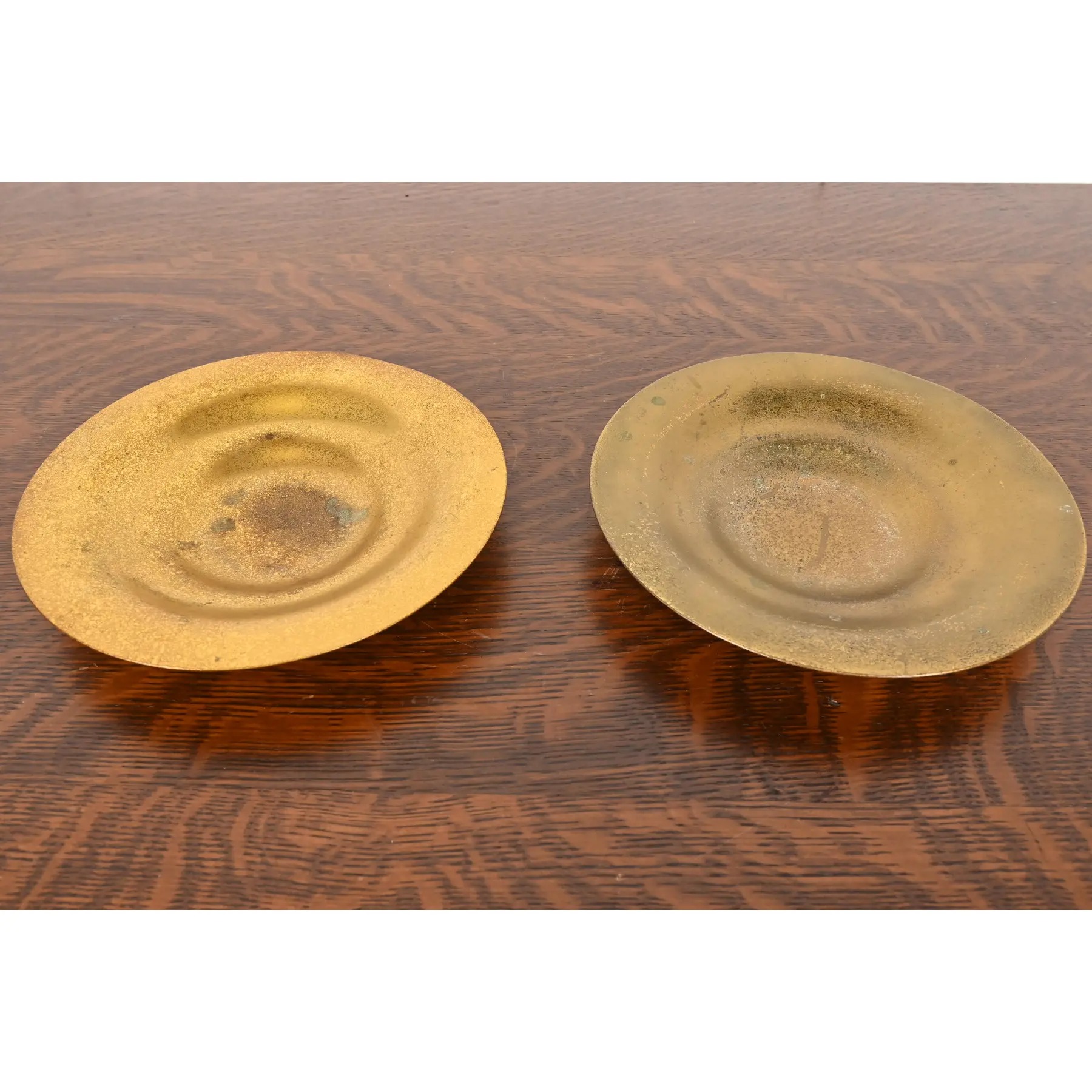 A gorgeous pair of Arts & Crafts or Art Deco period gilt bronze plates or shallow bowls