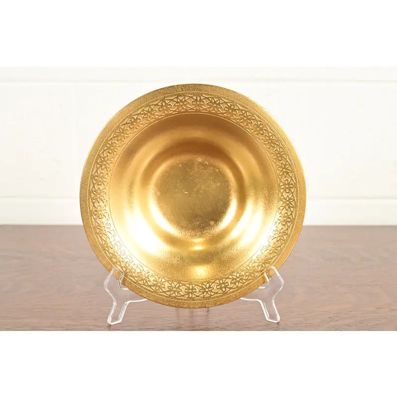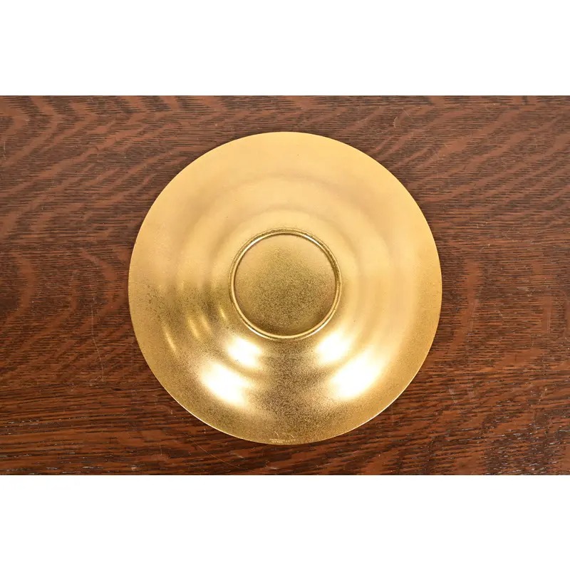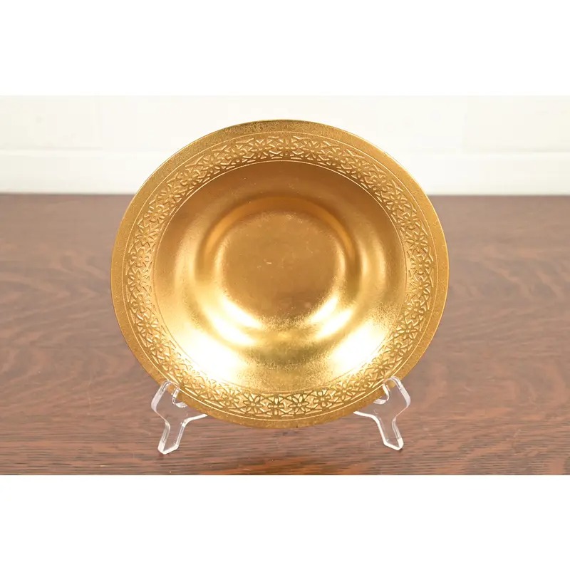 A gorgeous Arts & Crafts or Art Deco period gilt bronze shallow bowl or plate with decorative border