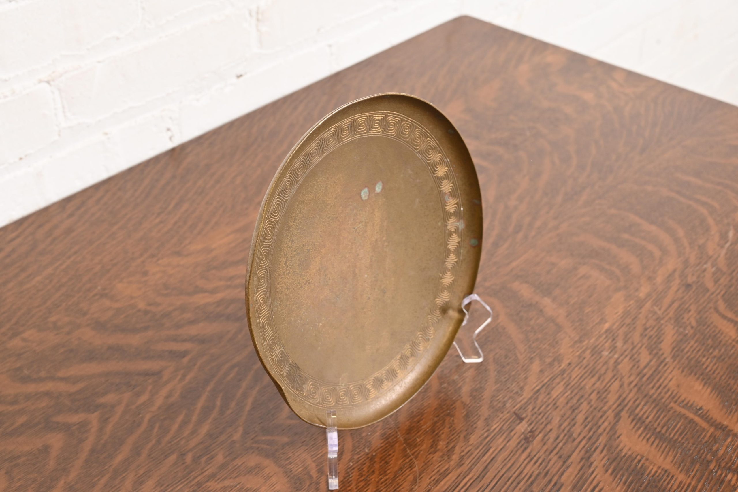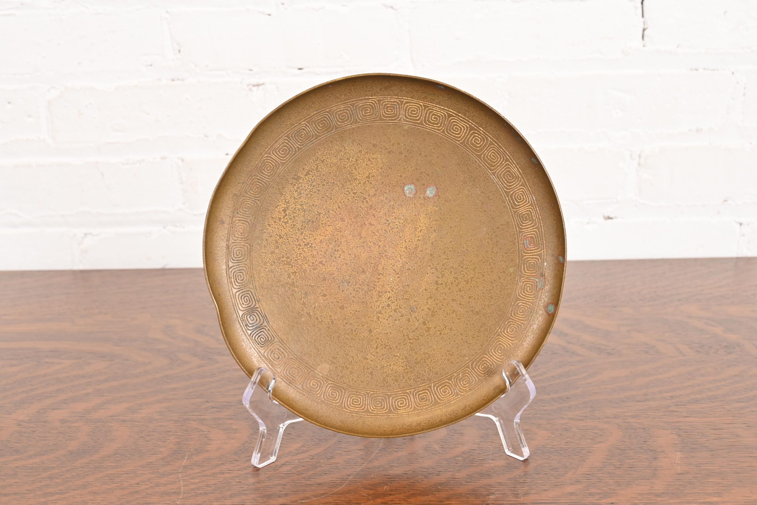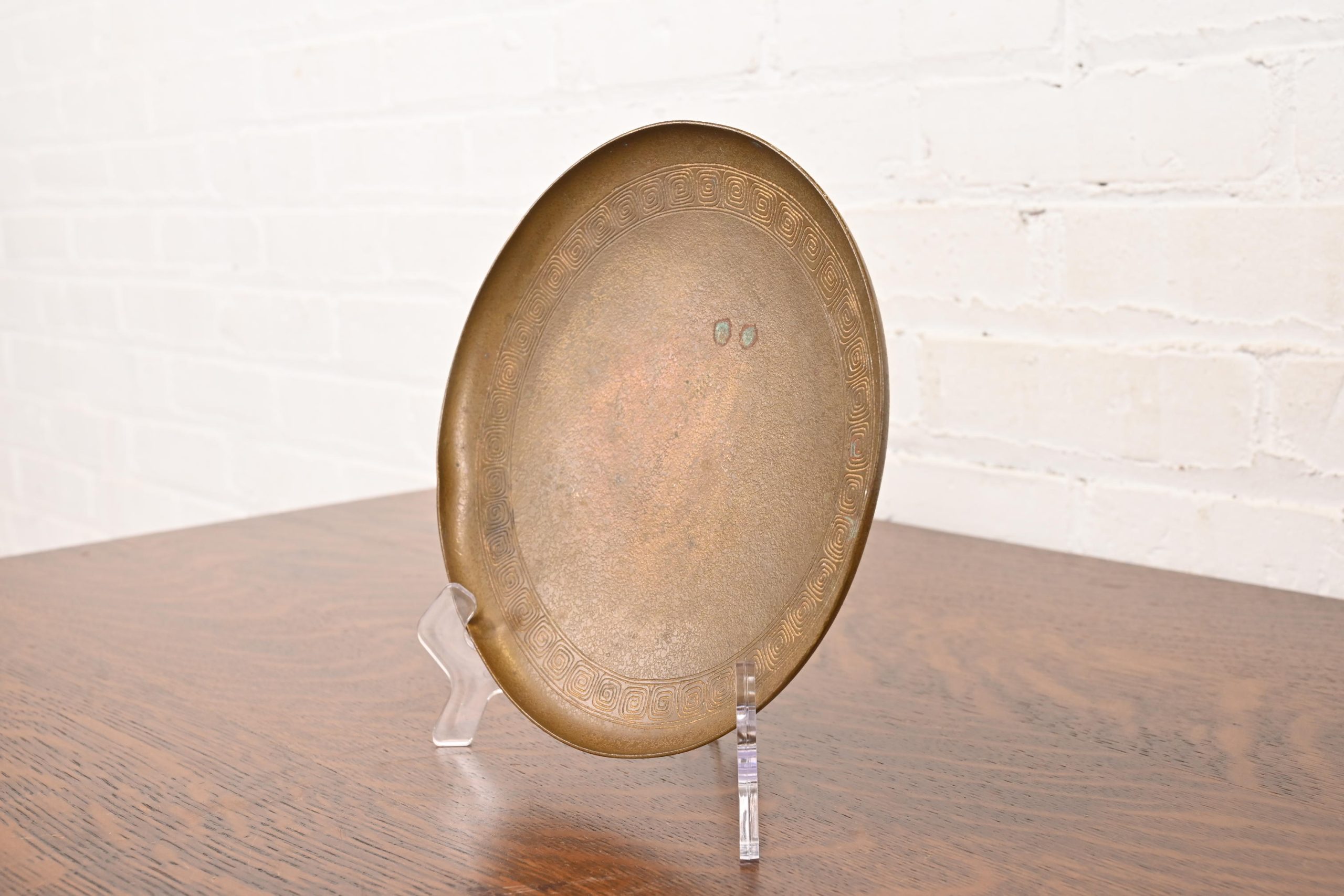 Tiffany Studios New York Bronze Plate With Greek Key Design