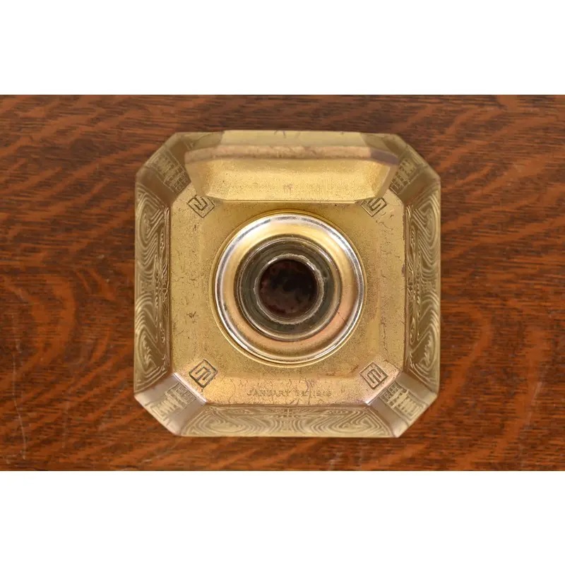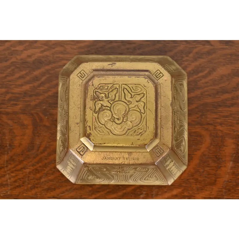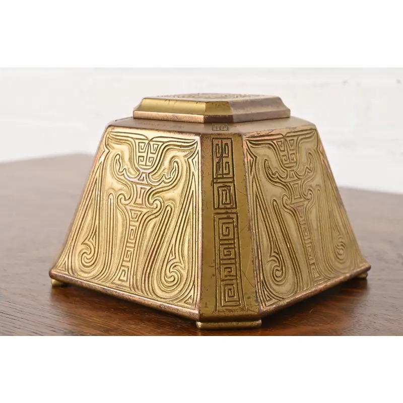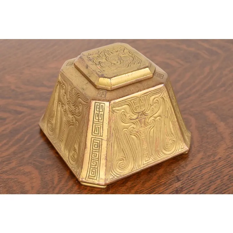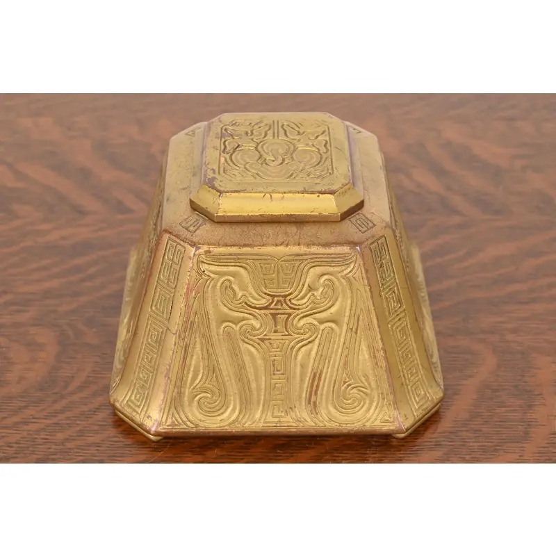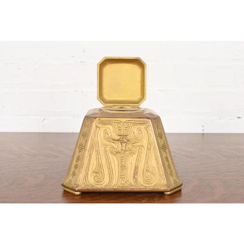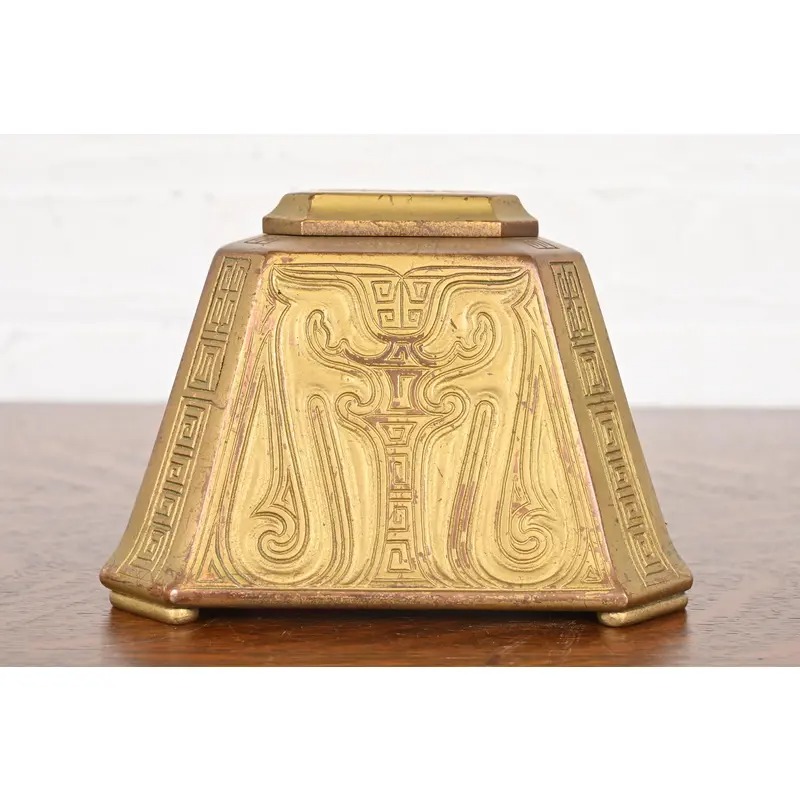 Tiffany Studios New York Chinese Pattern Bronze Doré Large Inkwell