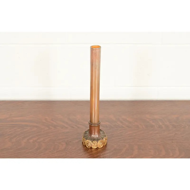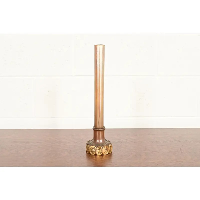 Tiffany Studios New York Favrile Iridescent Art Glass Tall Bud Vase on Bronze Doré Stand