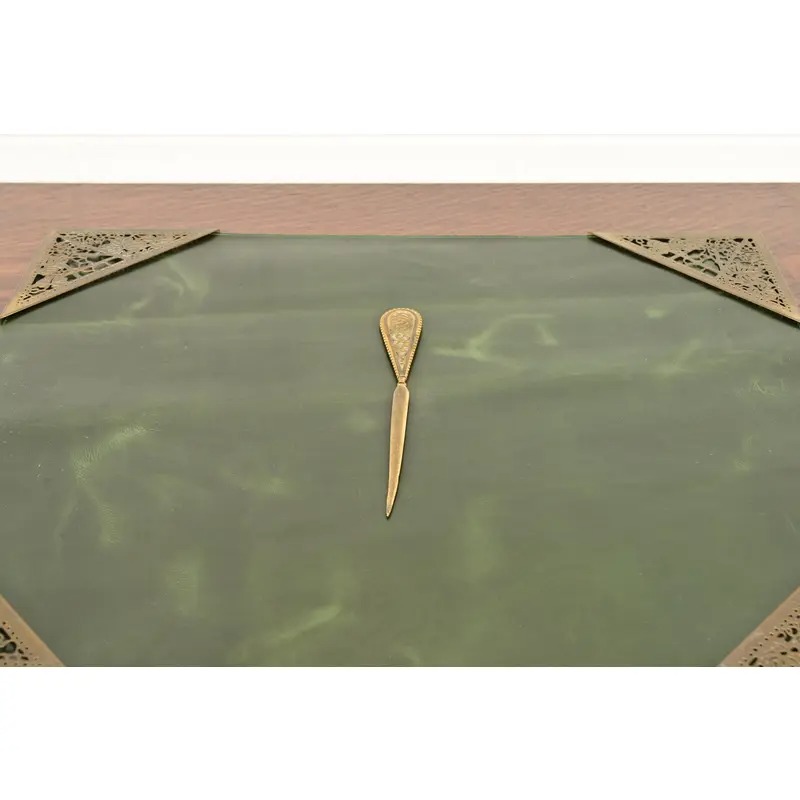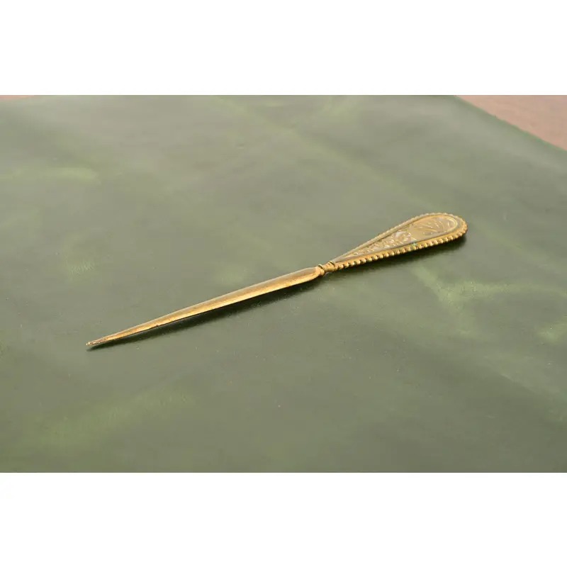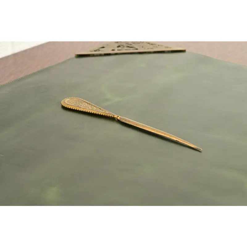 A gorgeous antique Arts & Crafts or Art Nouveau period “Grapevine” pattern gilt bronze and Favrile slag glass letter opener