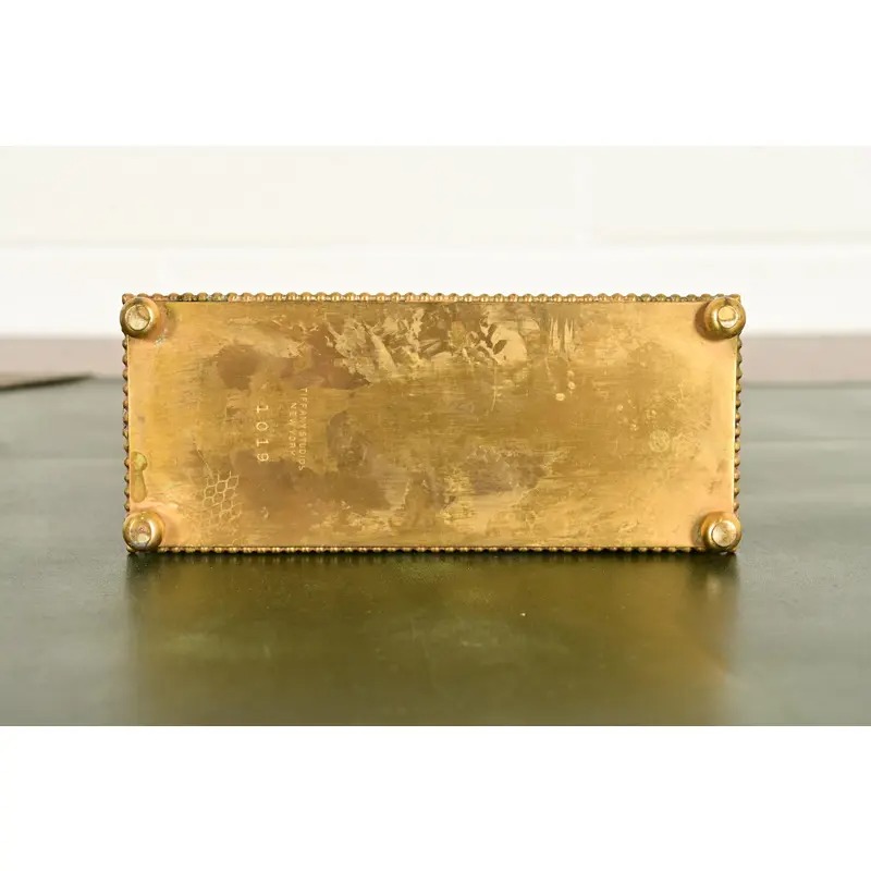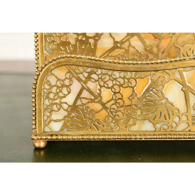 Tiffany Studios New York Grapevine Pattern Bronze Doré and Favrile Slag Glass Letter Rack