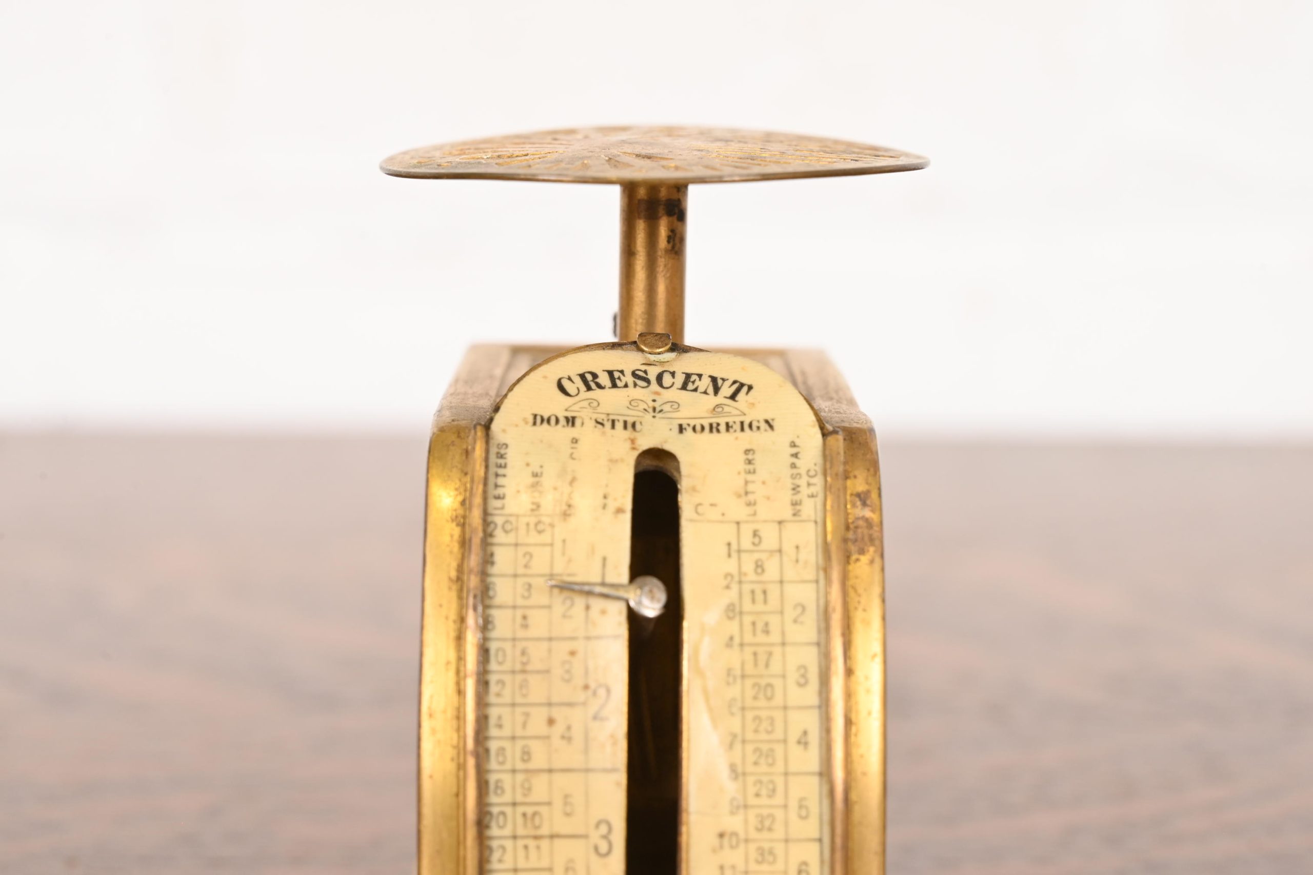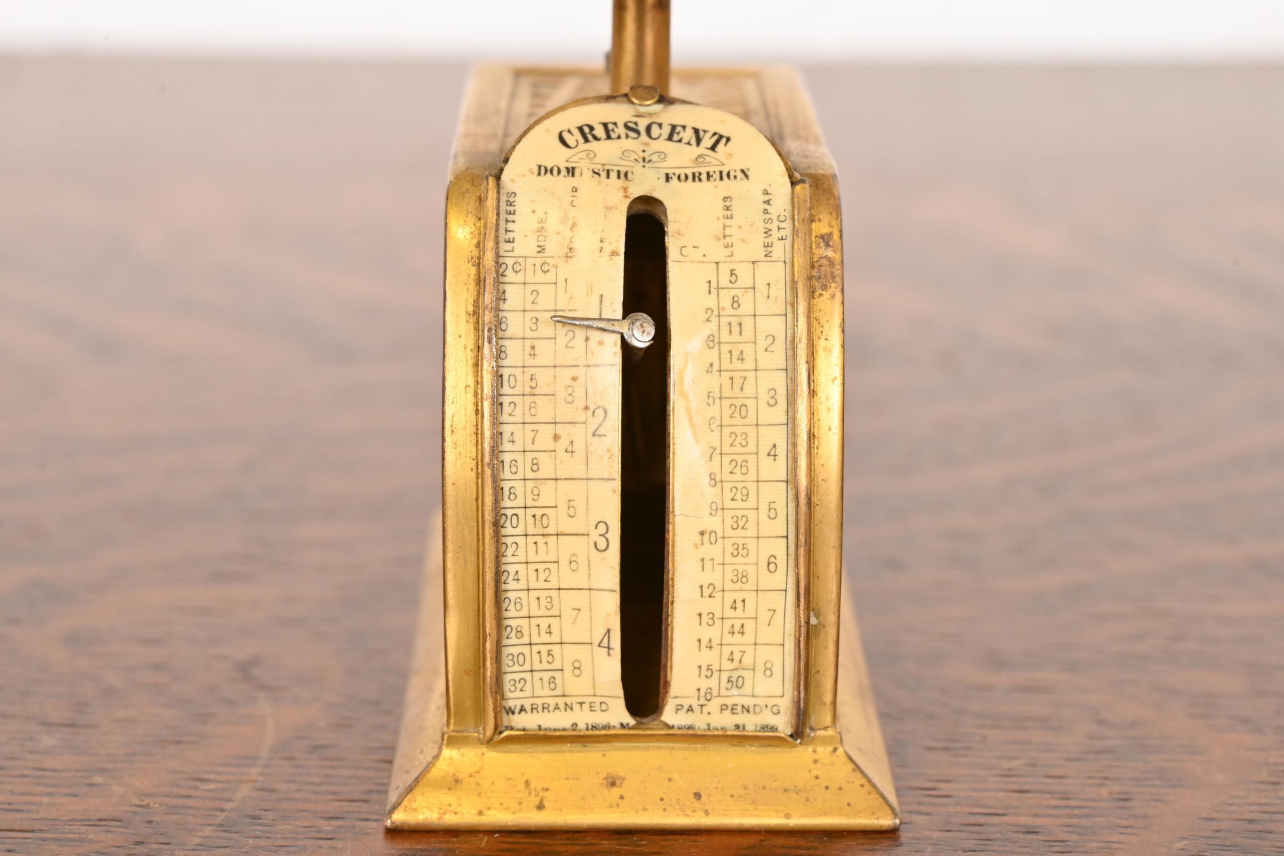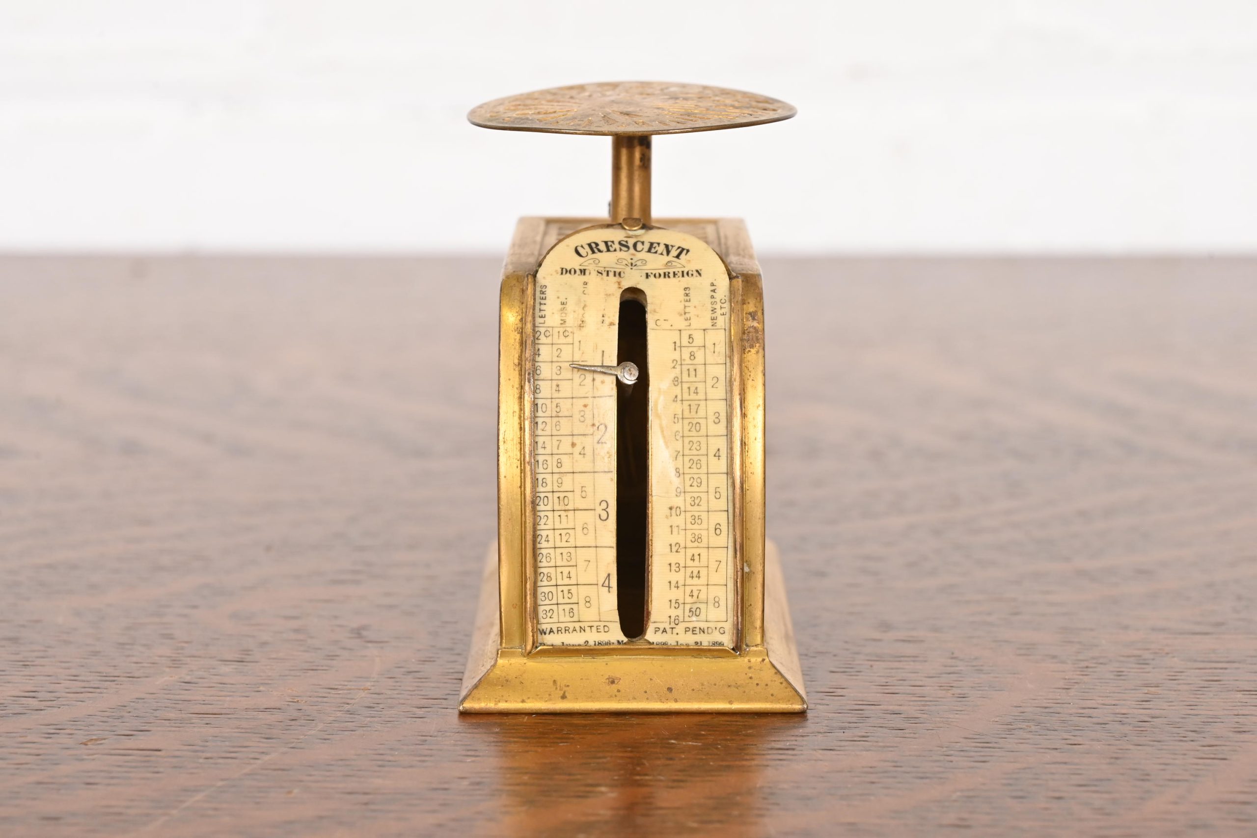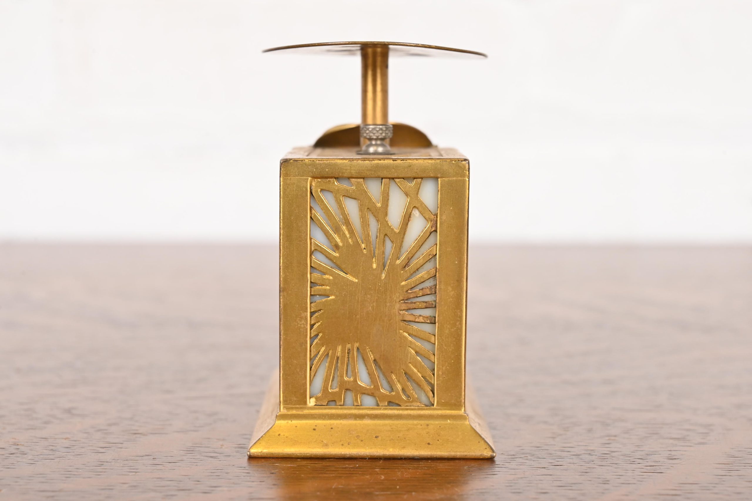 A gorgeous antique Arts & Crafts or Art Deco period gilt bronze and favrile slag glass “Pine Needle” pattern postage scale