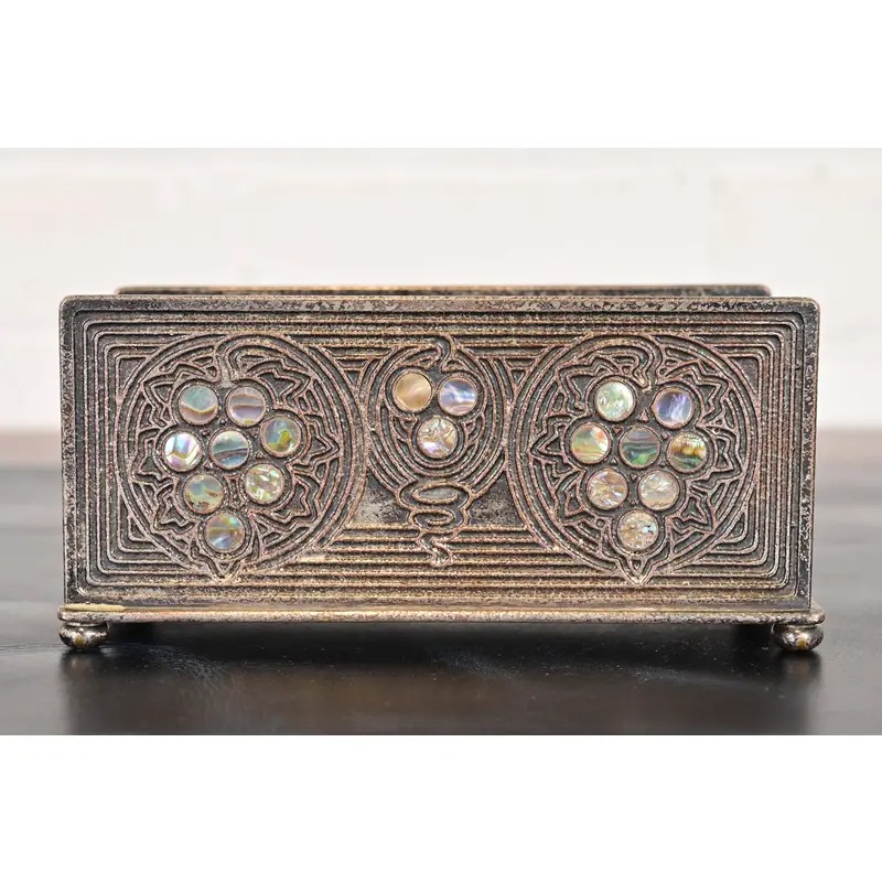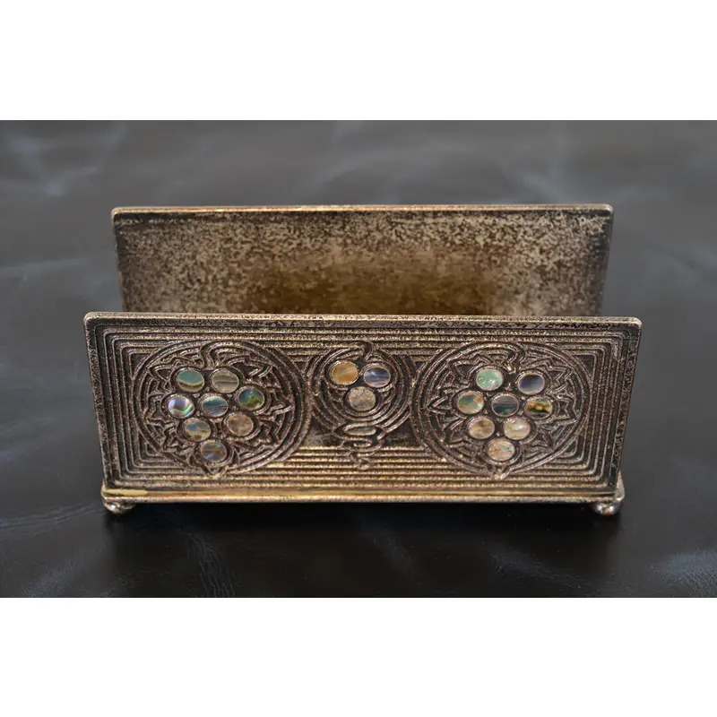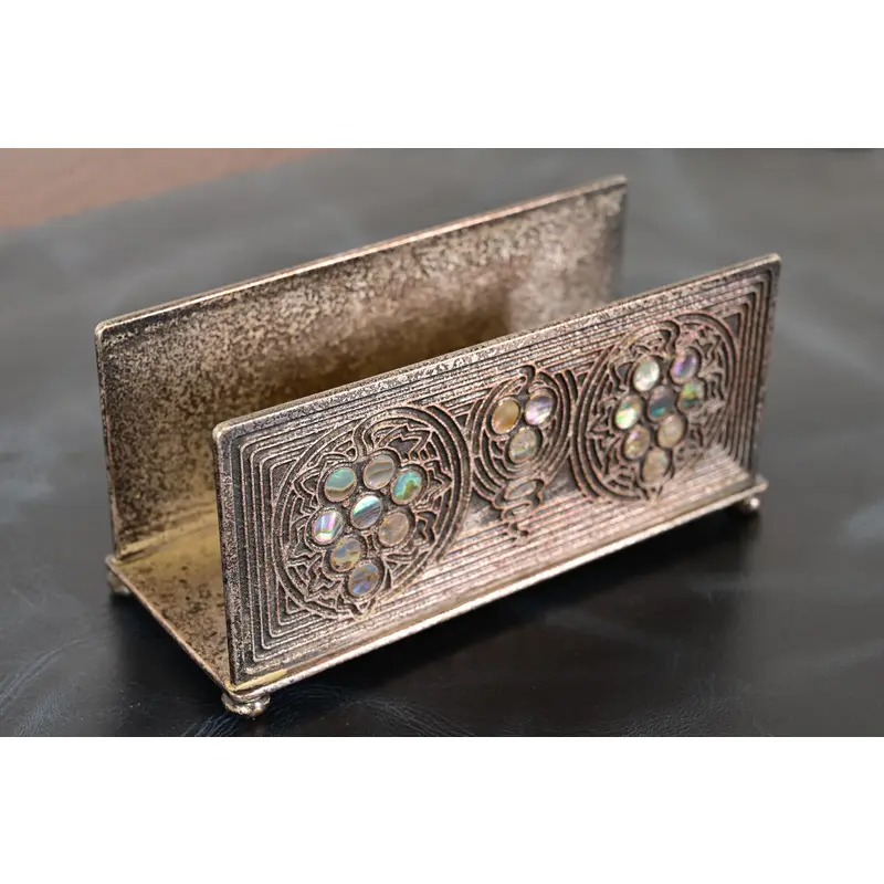 A gorgeous Art Nouveau or Art Deco period silvered bronze and inlaid abalone letter rack