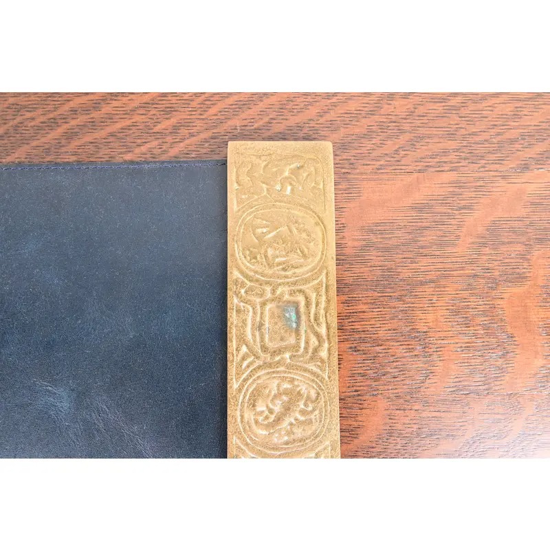 Tiffany Studios New York Zodiac Bronze Doré Blotter Ends With Leather Desk Blotter