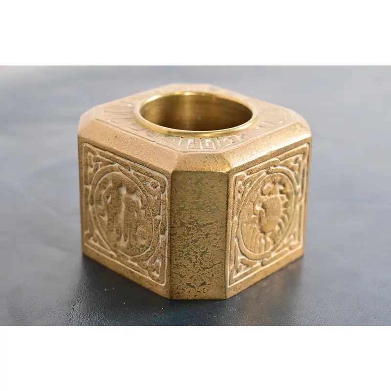 Tiffany Studios New York Zodiac Bronze Doré Pen Brush Holder