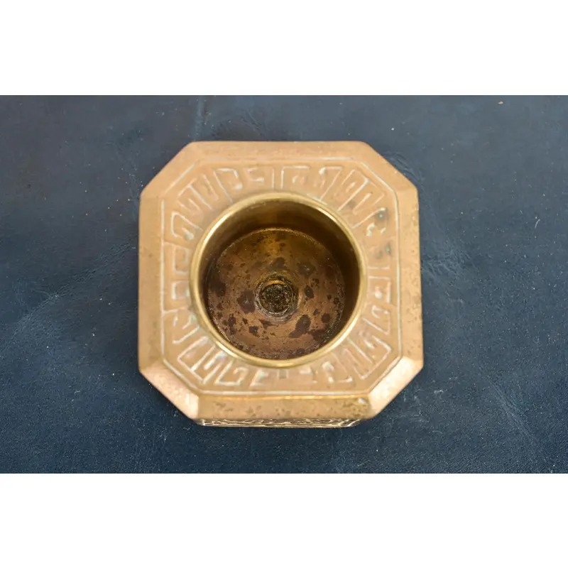 A gorgeous antique Arts & Crafts or Art Deco period gilt bronze pen brush holder featuring Zodiac designs