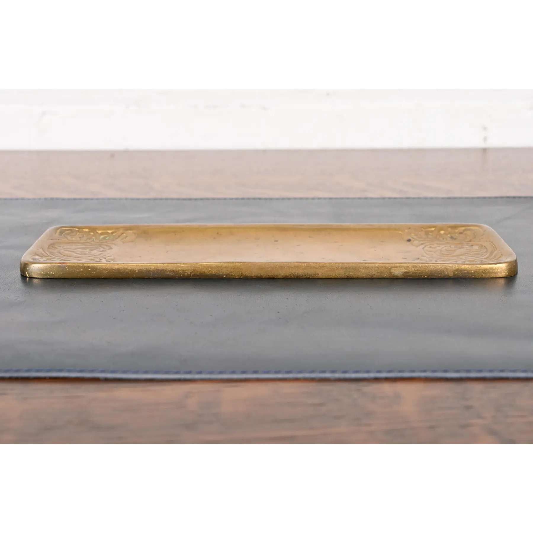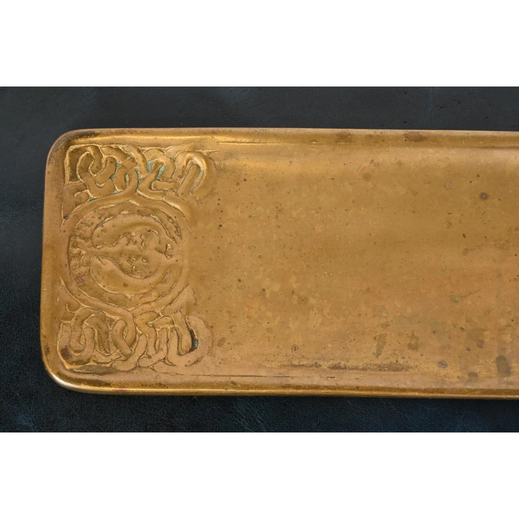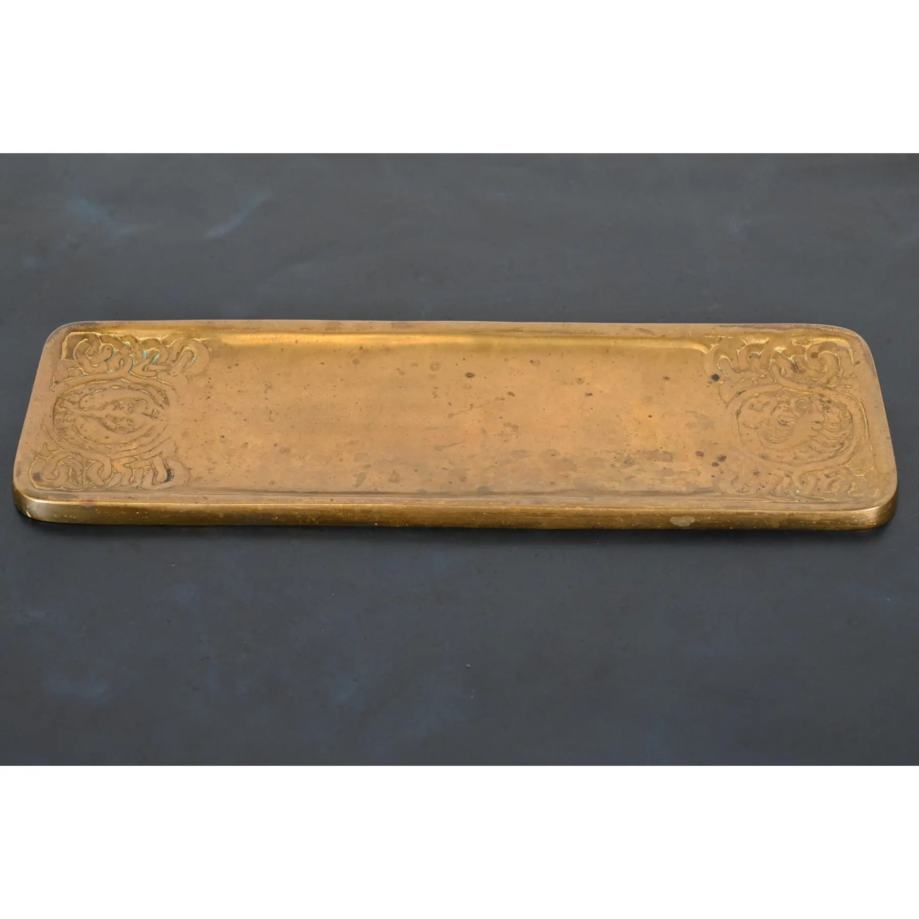 A gorgeous antique Arts & Crafts gilt bronze pen tray featuring Zodiac designs