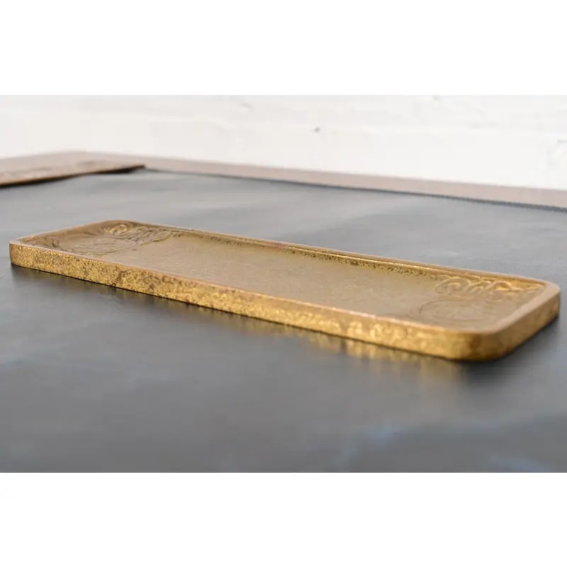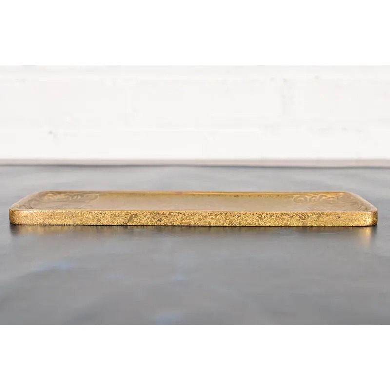 A gorgeous antique Arts & Crafts or Art Deco period gilt bronze pen tray featuring Zodiac designs
