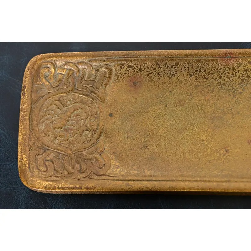 Tiffany Studios New York Zodiac Bronze Doré Pen Tray