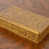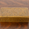 A gorgeous antique Arts & Crafts or Art Deco period gilt bronze “Zodiac” pattern stamp box, desk box, decorative box, or jewelry box
