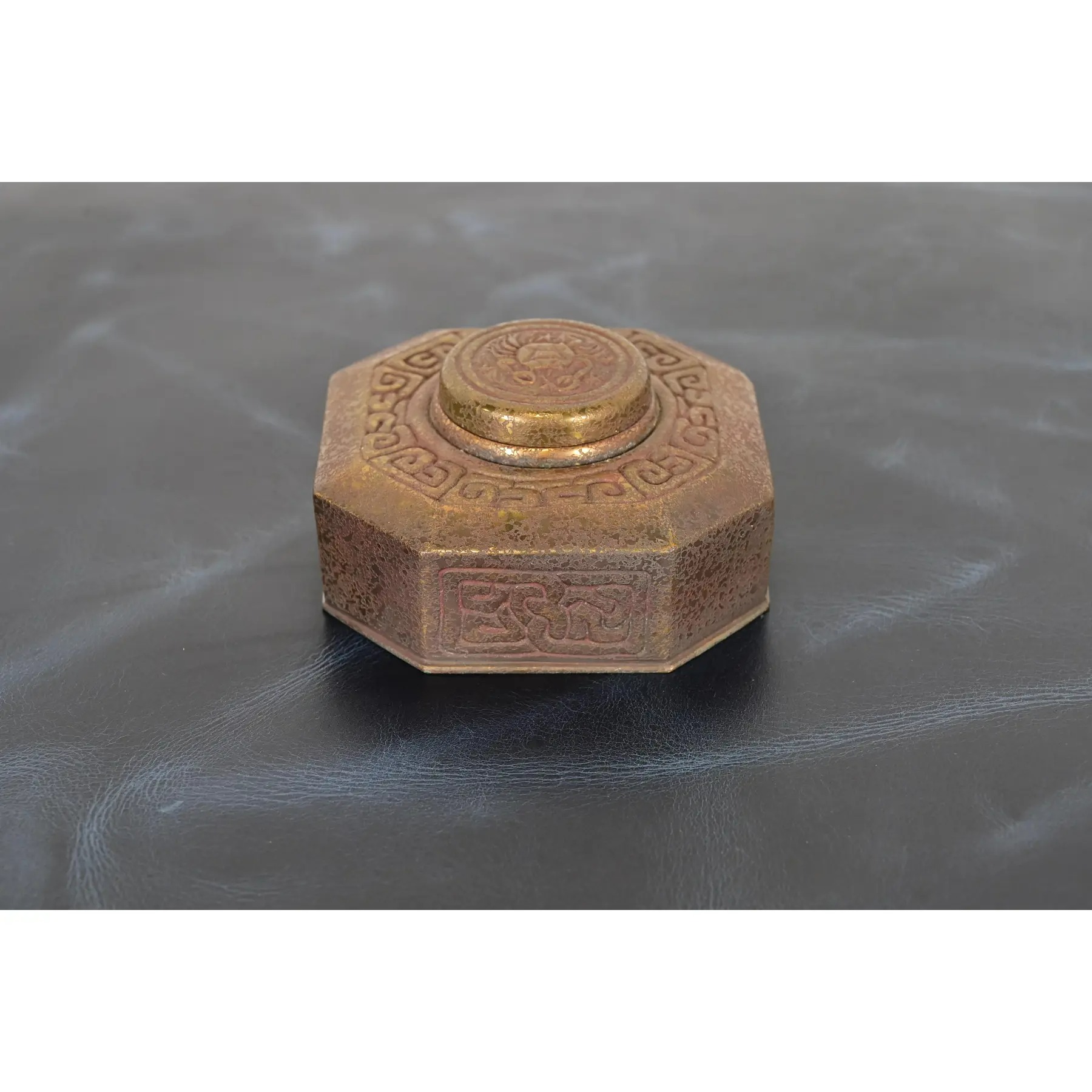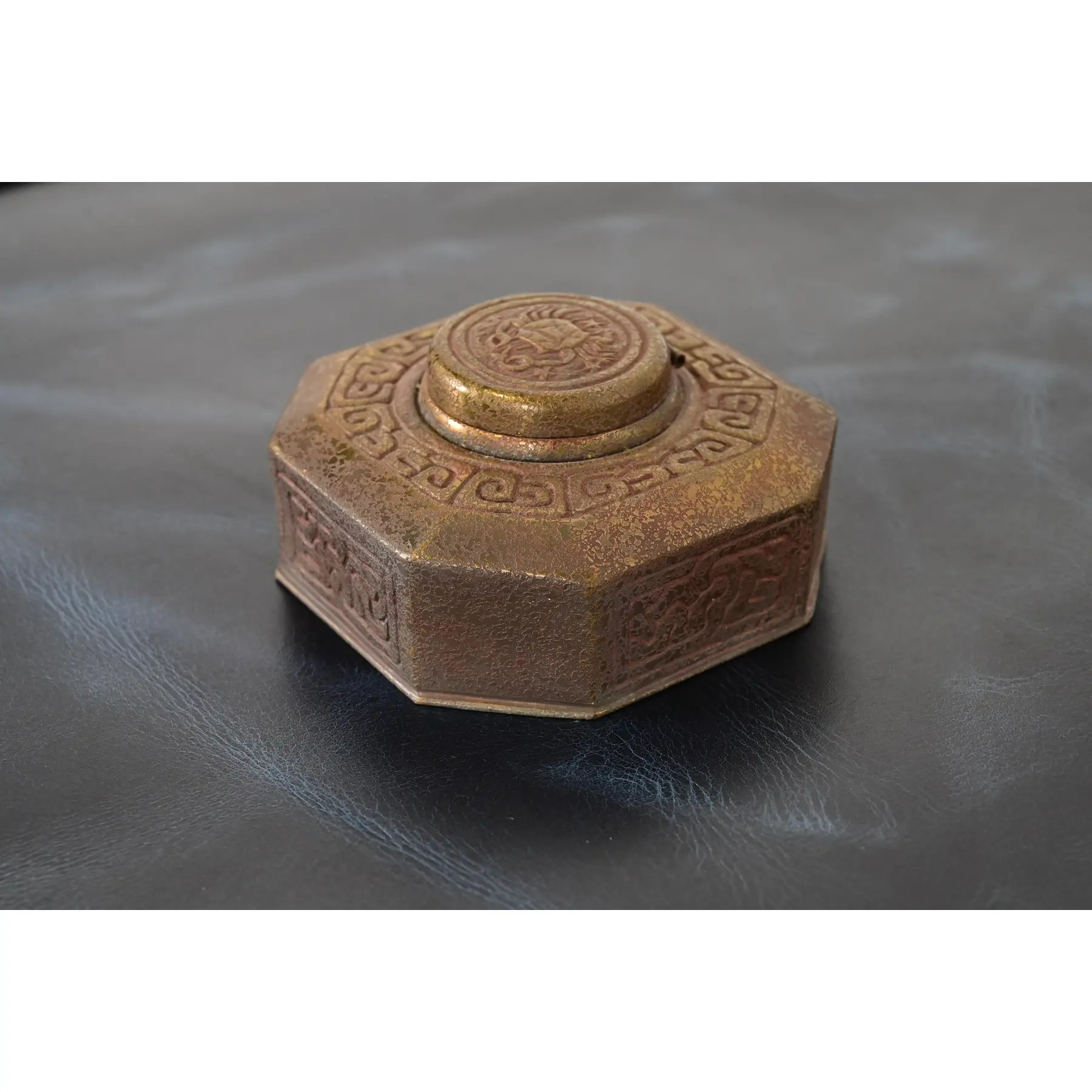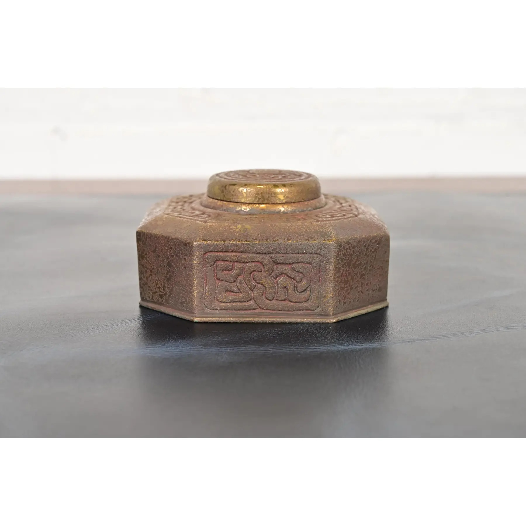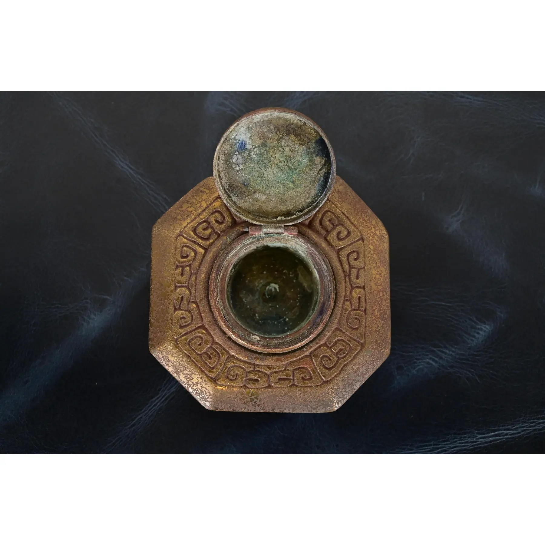 A gorgeous Arts & Crafts or Art Deco period “Zodiac” pattern bronze inkwell