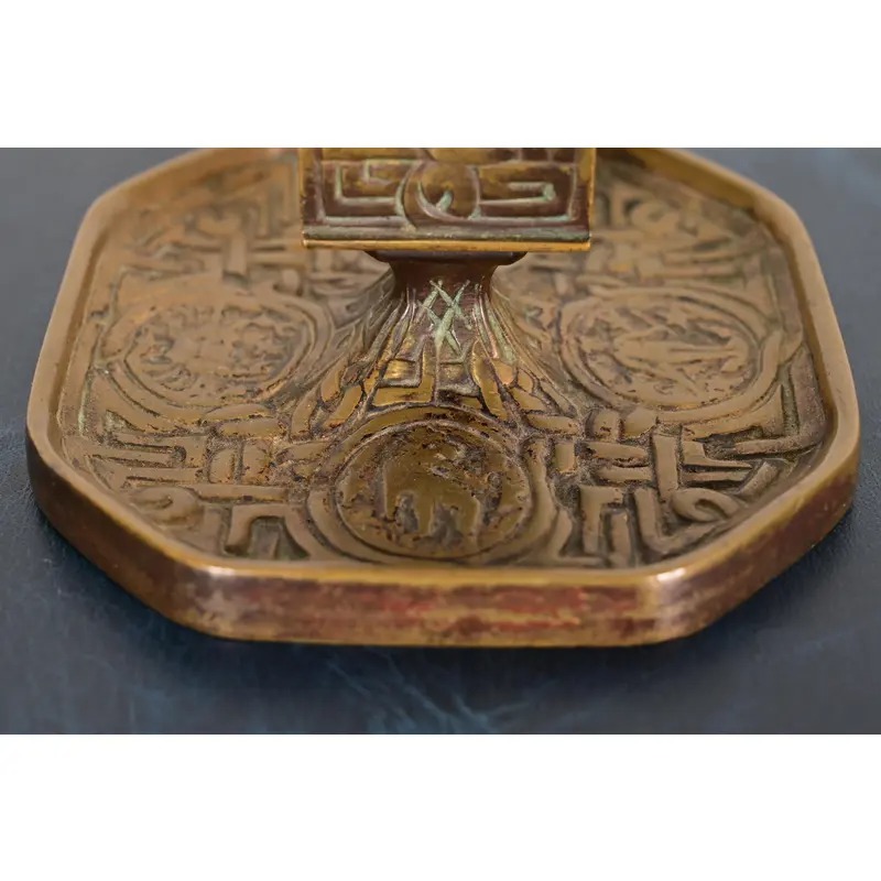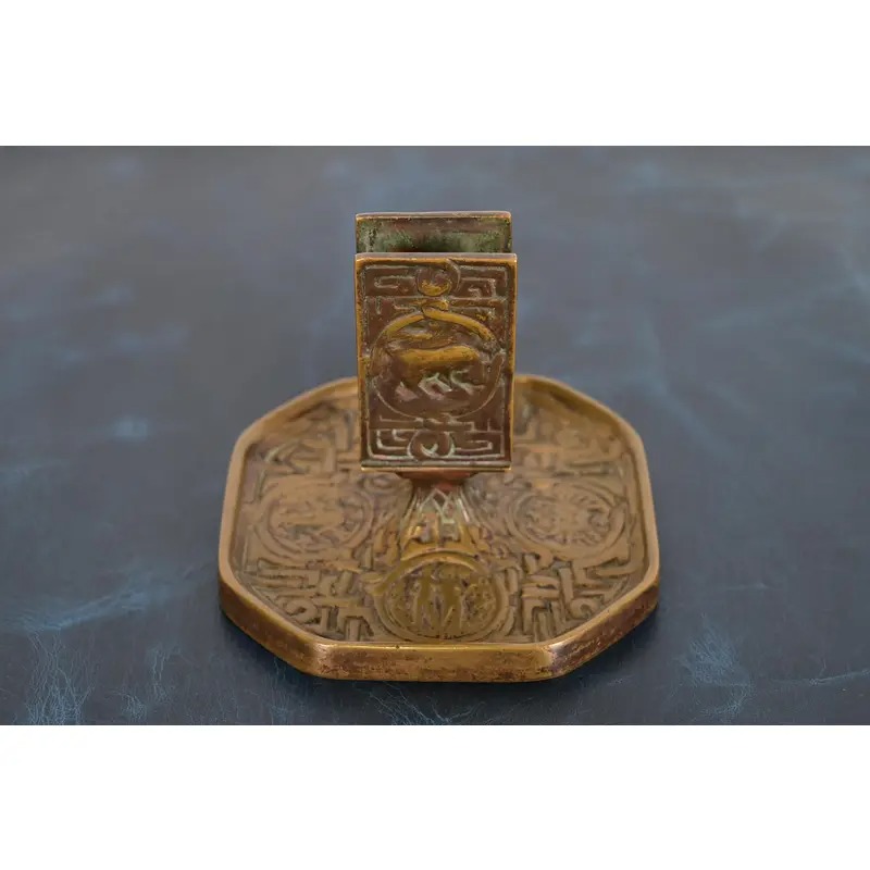 A gorgeous antique Arts & Crafts or Art Deco period bronze match box holder featuring symbols of the Zodiac