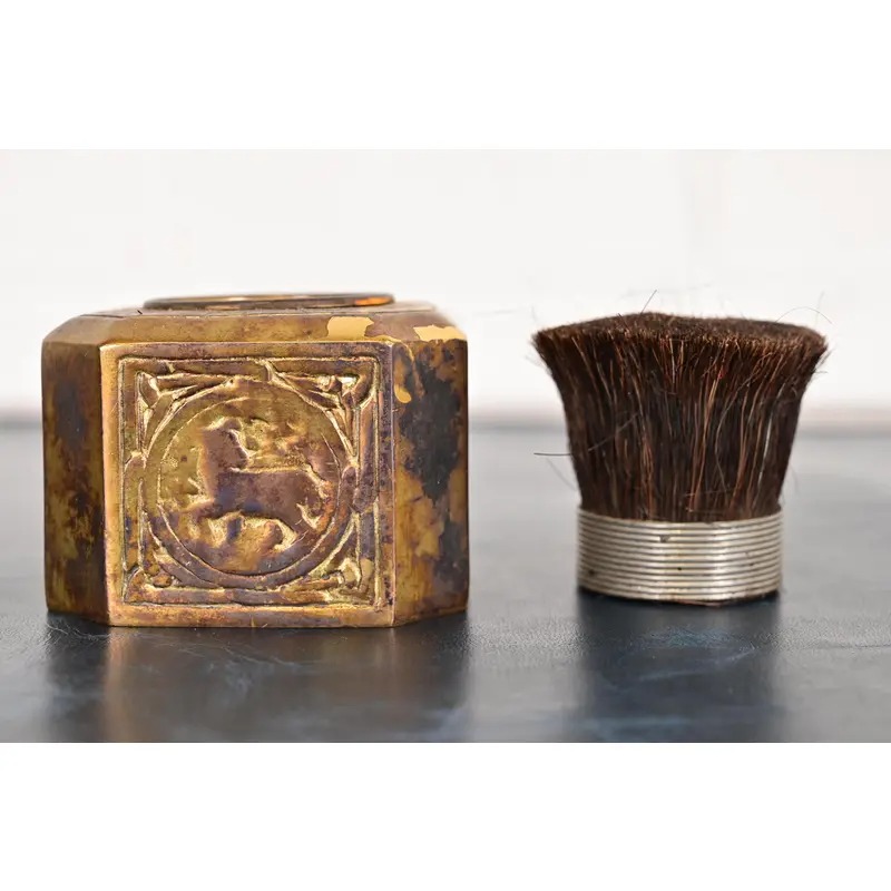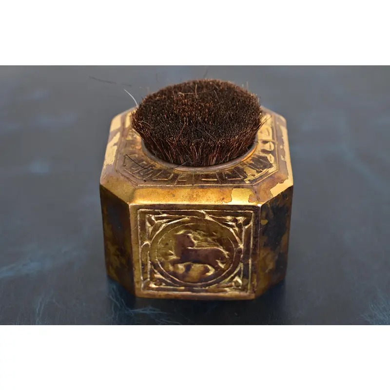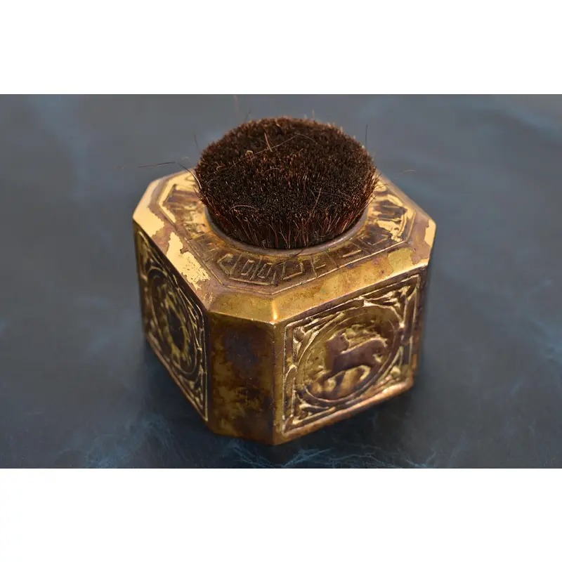 A gorgeous antique Arts & Crafts or Art Deco period bronze pen brush or pen wipe featuring Zodiac designs