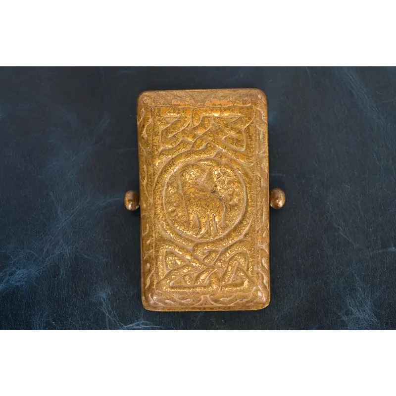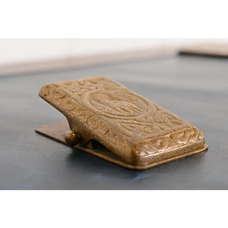 A gorgeous antique Arts & Crafts or Art Deco period gilt bronze “Zodiac” pattern large paper clip