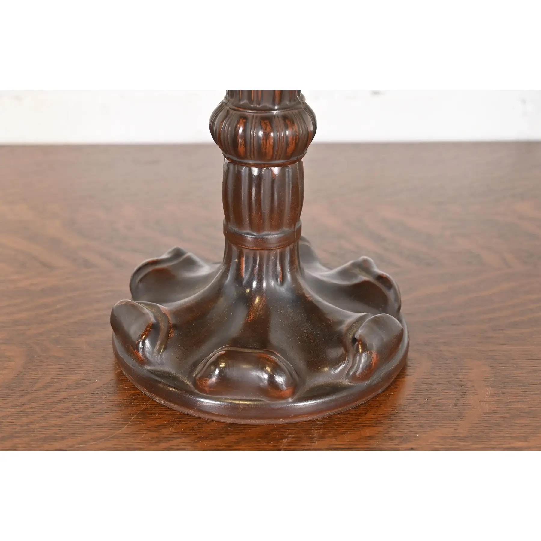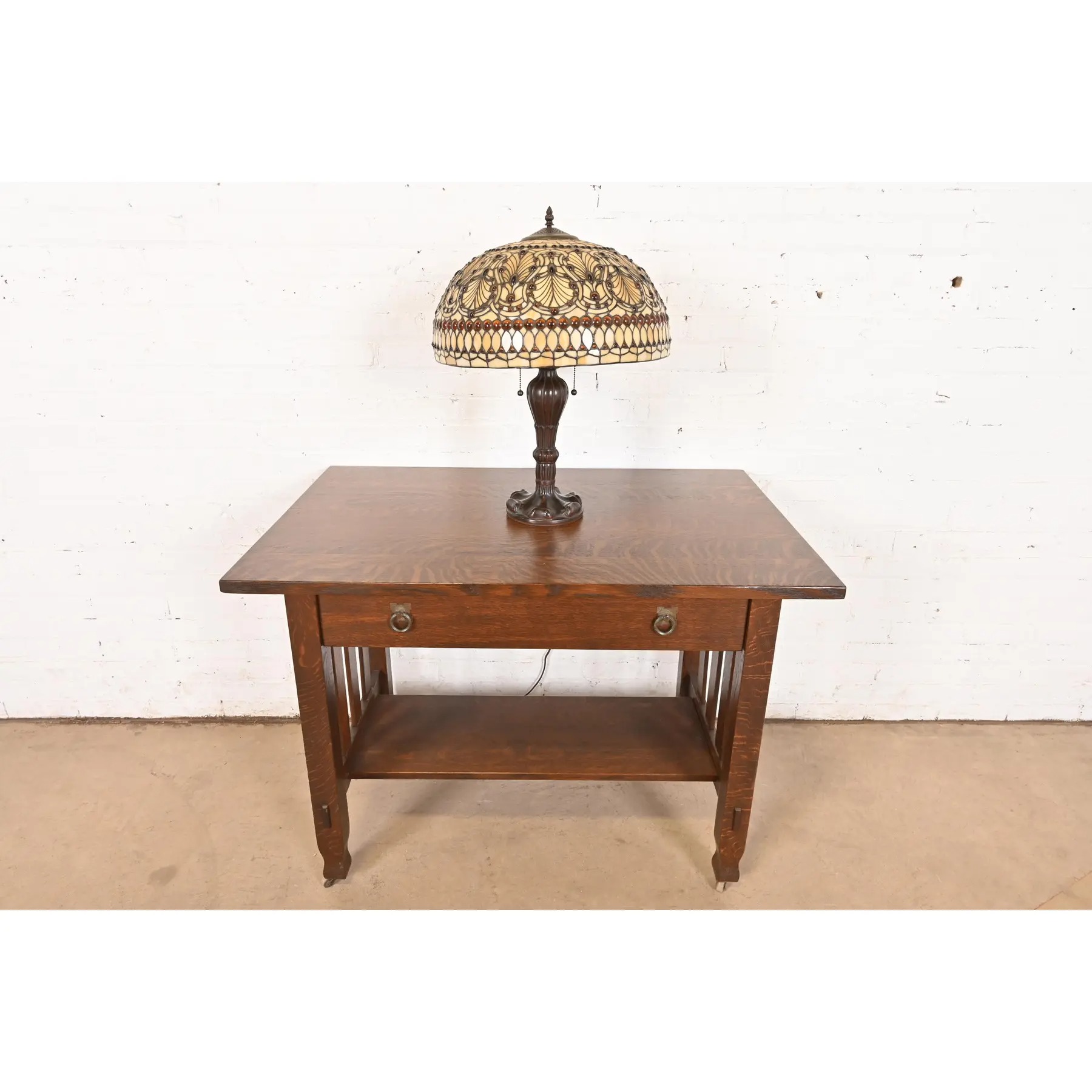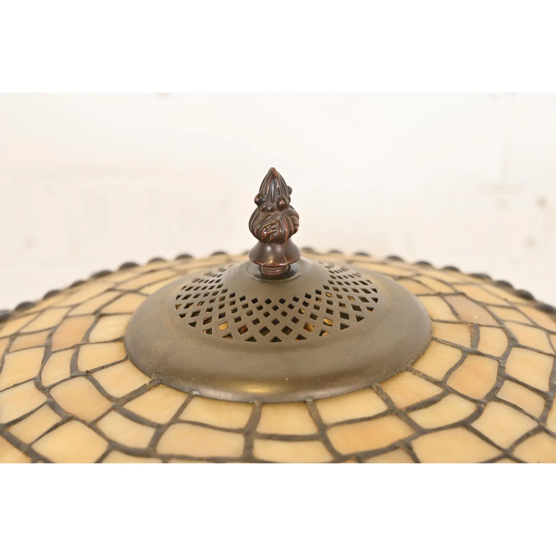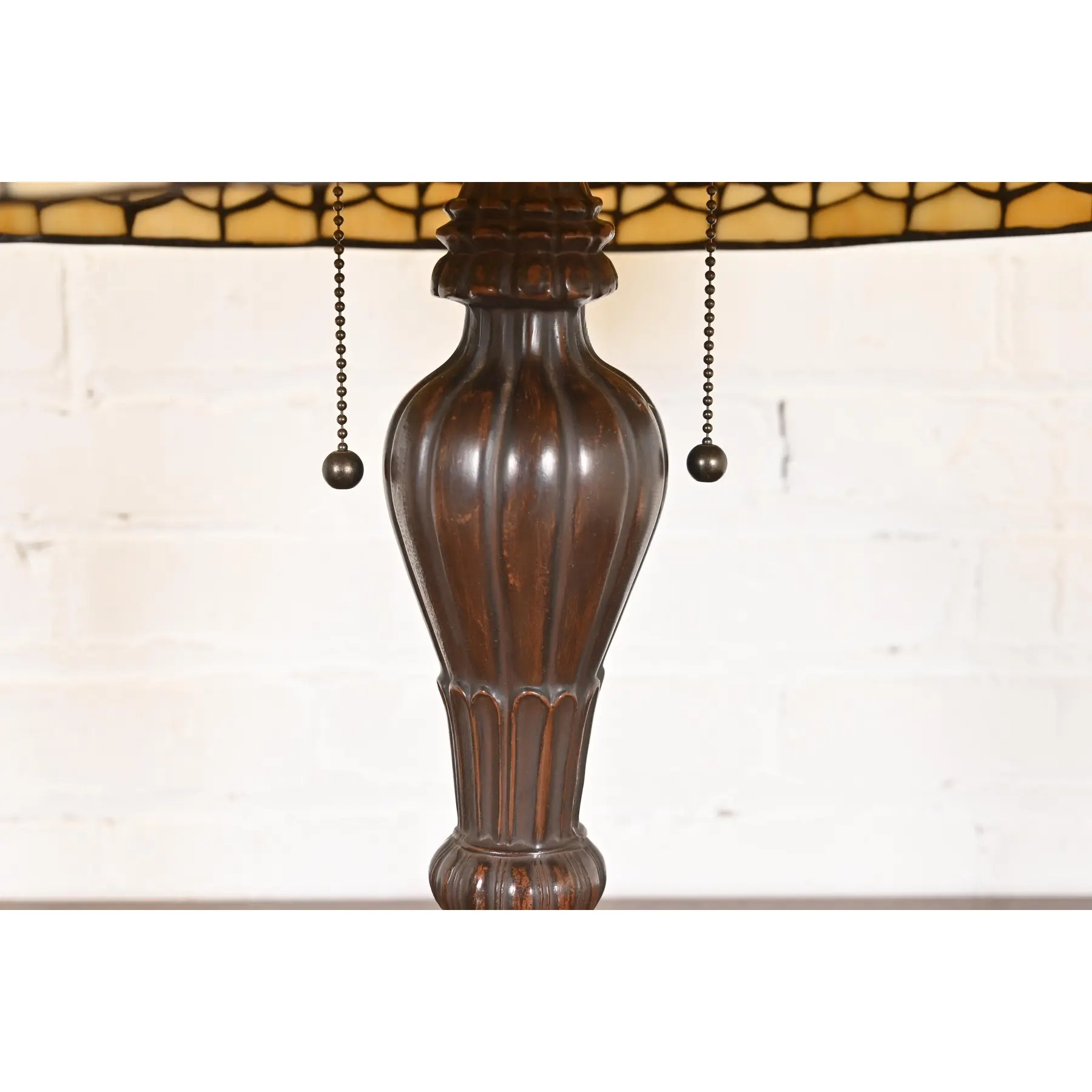 Tiffany Studios Style Arts & Crafts Table Lamp With Jeweled Stained Glass Shade
